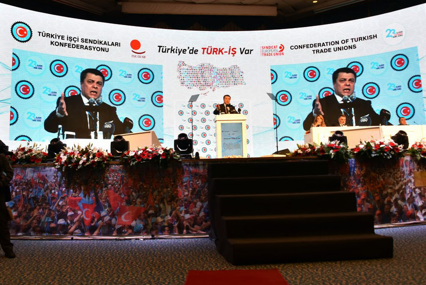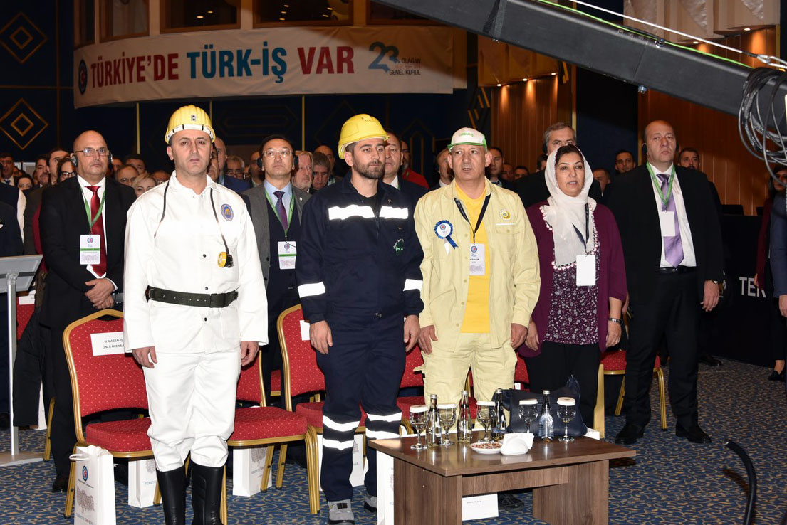 Genel Kurula sivil toplum örgütlerinin yöneticileri ile TÜRK-İŞ’e bağlı sendikalara üye çok sayıda emekçi katıldı. Genel Kurul salonunda işçiler en önde yer alırken, TÜRK-İŞ yönetimi ve TÜRK-İŞ’e bağlı sendikaların yöneticileri işçilerin hemen arkasında oturdu.