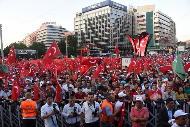 TÜRK-İŞ Genel Başkanı Ergün Atalay, konuşmasının tamamladıktan sonra TÜRK-İŞ Yönetim Kurulu üyeleri yüzlerce işçiyle birlikte Kızılay meydanına yürüdü. Yürüyüş esnasında işçiler tek biz ağızdan “Türk-İş nerede, biz oradayız”, “Şehitler ölmez, vatan bölünmez” sloganları ile Kızılay meydanına ulaştı. Türk-iş Genel Başkanı Atalay, Kızılay meydanında demokrasi nöbeti için bekleyen binlerce vatandaşımıza seslenerek; “TÜRK-İŞ olarak sizin yanınızdayız, demokrasinin yanındayız” dedi.