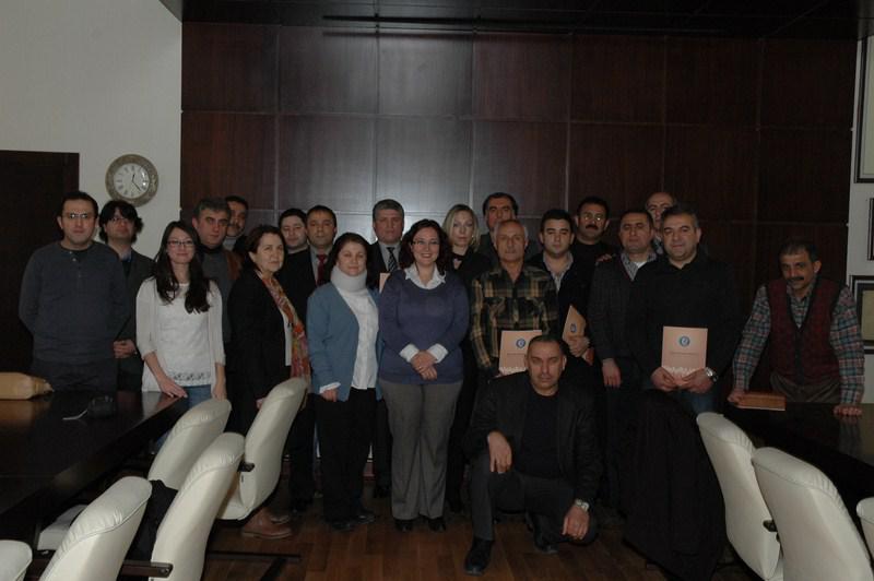 \011 - \011Ankara Üniversitesi Siyasal Bilgiler Fakültesi’nde 3 Kasım 2012 - 12 Ocak 2013 tarihleri arasında gerçekleştirilen eğitimlere Türk Metal’den yedi kursiyer sendikacı katıldı. Aksaray Şube Başkanımız Muhterem Taşdemir, Ankara 3 Nolu Şube Başkanımız Nihat Zengin, Ankara 2 Nolu Şube Başkanımız Halil İbrahim Alpoğlu, Kırıkkale Şube Başkanımız Mürsel Öcal, Çankırı Şube Başkanımız Aydın Akbaş, Kayseri Şube Başkanımız Ali Gökkaya ve Konya Bölge Temsilcimiz Mustafa Taşçı eğitimlere katılan sendikacı kursiyerler oldu. Diploma törenine Ankara Üniversitesi Siyasal Bilgiler Fakültesi Sosyal Politikalar Merkezi Müdürü Prof. Dr. Ahmet Makal katıldı.