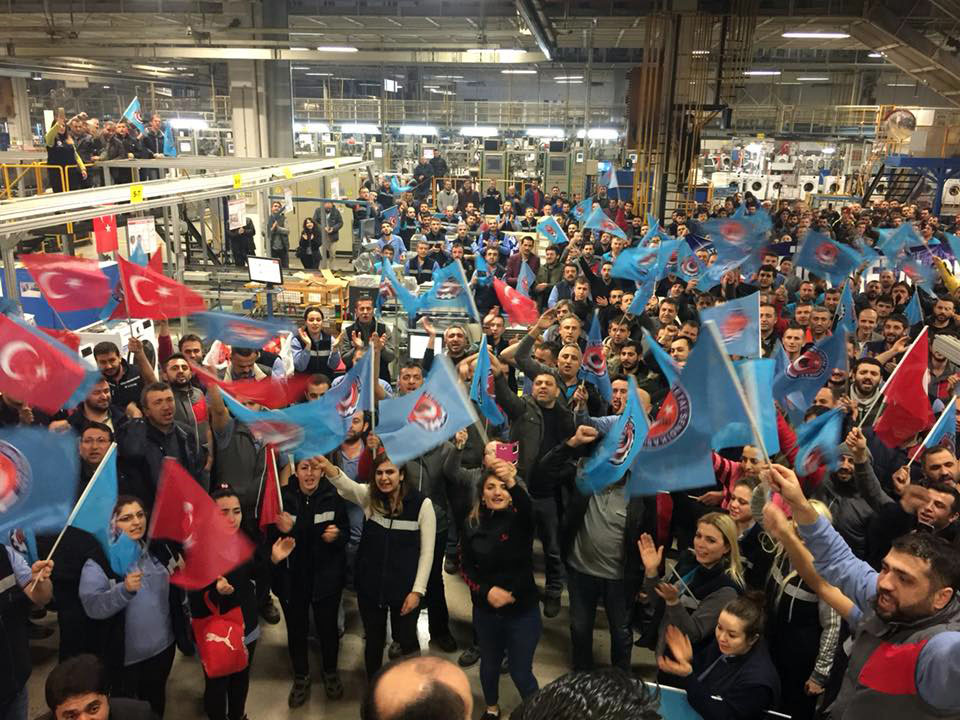5 Ekim 2017 tarihinde başlayan ve 30 Ocak 2018 tarihinde taraflar arasındaki anlaşma ile tamamlanan müzakerelerde bizleri işyerlerinde, sokaklarda, caddelerde, kent meydanlarında yağmur çamur demeden destekleyen, sendikasının arkasında duran, gösterdiği olgunlukla işçiyi işverene, işvereni işçiye düşman etmeyen üyelerimize bir kez daha teşekkür ederiz.