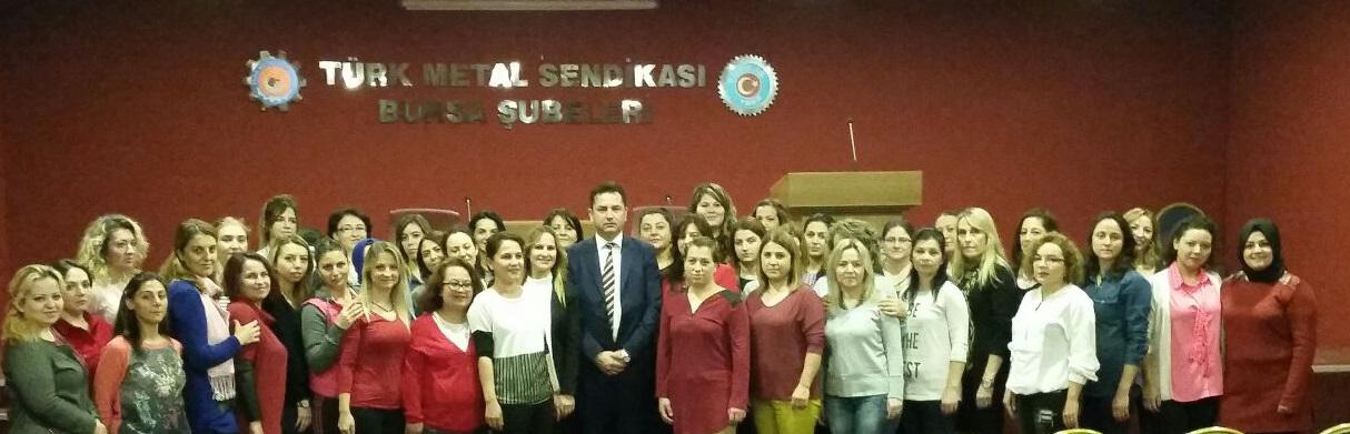 Bursa genelinde çalışan kadın metal işçilerini bünyesine katarak kadın emekçilere yönelik organizasyonlar gerçekleştiren Bursa Kadın Kolları “Kadının Çalışma Hayatında Örgütsel Ve Kişisel Dayanıklılığı” temalı eğitim semineri verdi. 23-27 Kasım tarihleri arasında Türk Metal Sendikası Bursa Şubeleri Sosyal Tesislerinde verilen eğitimin açılışına Genel Başkan Yardımcımız Mesut Gezer de katıldı.