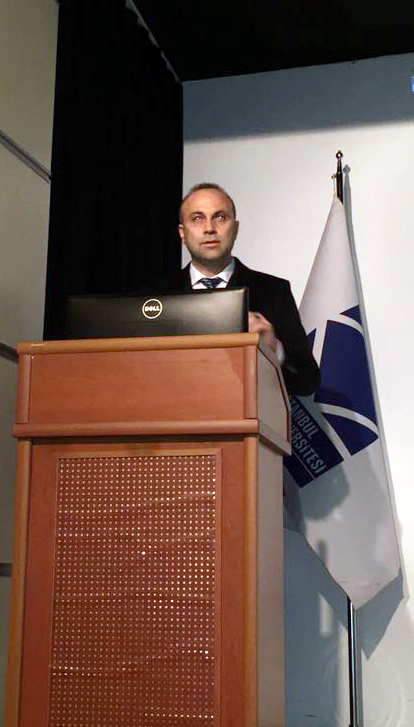 Prof. Dr. Nizamettin Aktay’ın konuşmasından sonra Genel Sekreterimiz Av. Taliphan Kıymaz, “İş Hukuku, İş Güvenliği, İş Hukukunun Kapsamı ve Gelecekte İş Hukuku” konulu bir sunum yaptı. Genel Sekreterimiz Kıymaz, sunumundan önce hukuk topluluğu öğrencilerine kısa bir konuşma yaparak şunları söyledi: “İstanbul Aydın Üniversitesi Hukuk Fakültesi’ne sendikamız adına ilkleri gerçekleştirmek heyecanı ile gelmeyi planlıyorduk. İlk kez çalışma ekonomisi öğrencileri yerine hukuk fakültesi öğrencilerinden davet almıştık. Yine üniversite-sendika buluşmalarını ilk kez bir özel üniversite de gerçekleştirecektik. Fakat bir hafta önce sendikamız adına çok acı bir olay yaşadık. 8 Mart Dünya Kadınlar Günü’nü kutlamak üzere Ankara’ya gelen 7 kardeşimizi elim bir trafik kazasına kurban verdik. Buraya onlarını acısını içimizde yaşayarak geldik. Ben buradan, sizin huzurunuzda geçen hafta kaybettiğimiz arkadaşlarımıza Allah’tan rahmet, kederli ailelerine ve mensubu olduğum Türk Metal ailesine tekrardan sabır ve başsağlığı diliyorum.”