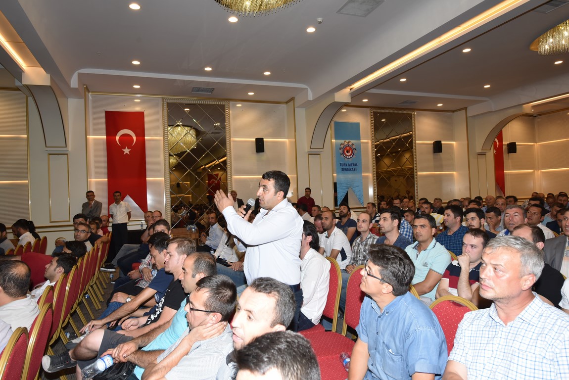 “Bir söz daha vermiştim. Demiştim ki: 2017 Sözleşmesi için MESS’le masaya oturduğumda, Masadaki taslağımızı üyemiz hazırlamış olacak. Taslak onun eseri olacak demiştim. Bugün burada onun için toplandık. Üyemizin beklentisi ile oluşacak taslağı hazırlamak için buluştuk. Uysal Bey anlattı. Üyemizin beklentisini, anket ve kamuoyu yoklaması yoluyla doğrudan kendisinden aldık. İki anket birden yaptık. Birini Türkiye’nin en önde gelen kamuoyu araştırma şirketine yaptırdık. Ondan hizmet satın aldık. Bir anketi de kendi araştırma merkezimiz hazırladı. Kontrollü gidelim istedik, sağlamasını yaptık. Türkiye’nin belki de en geniş katılımlı anketini gerçekleştirdik. Sonuçları aldık, işledik ve değerlendirdik. Uysal bey ilk sonuçları size sundu. Bu birinci aşamaydı. İkinci aşamada, Her bölgede toplantılar yapacağız demiştim. Bugün bu toplantıların ilkini yapıyoruz. Her bölgede yapacağız. Üçüncü aşamada, Bölgelerden çıkan sonuçlar gelecek hafta yapacağımız Başkanlar Kurulu’nda ele alınacak. Taslağa son halini orada vereceğiz. Ve sonra yetkiler kesinleştikten sonra da taslağımızı kamuoyu ile paylaşacağız. Ve sonra. Sonra o taslağın arkasında duracağız. Namusumuz gibi sahip çıkacağız. Tarih yazacağız, tarih. Bunun için ihtiyacımız olan tek şey birliktir. Biz kararlıyız. Metal işçisine, Türk Metal üyesine en iyi sözleşmeyi hediye edeceğiz.”