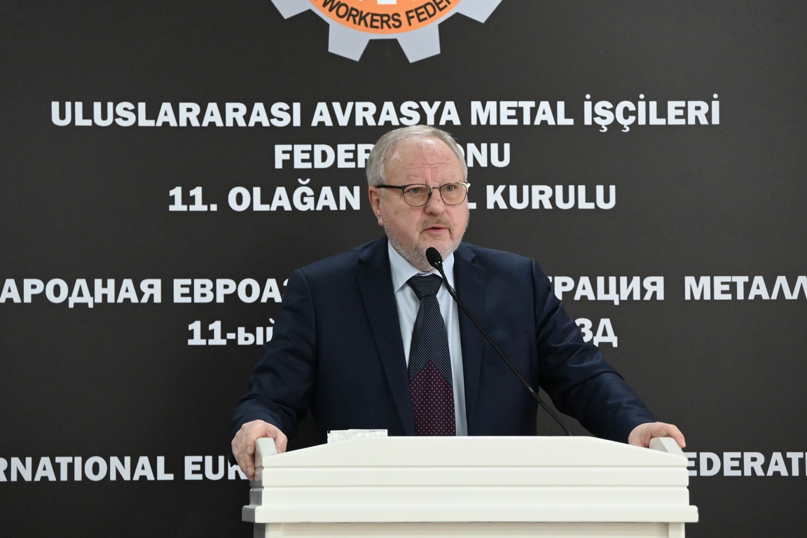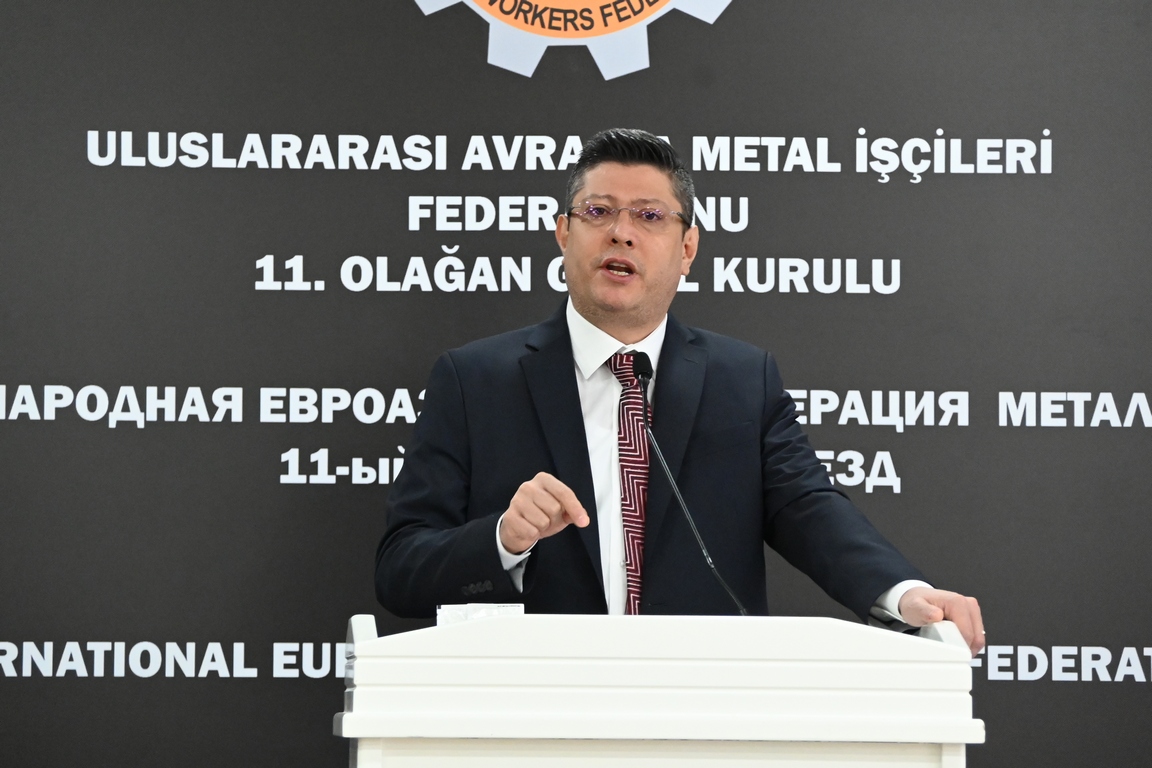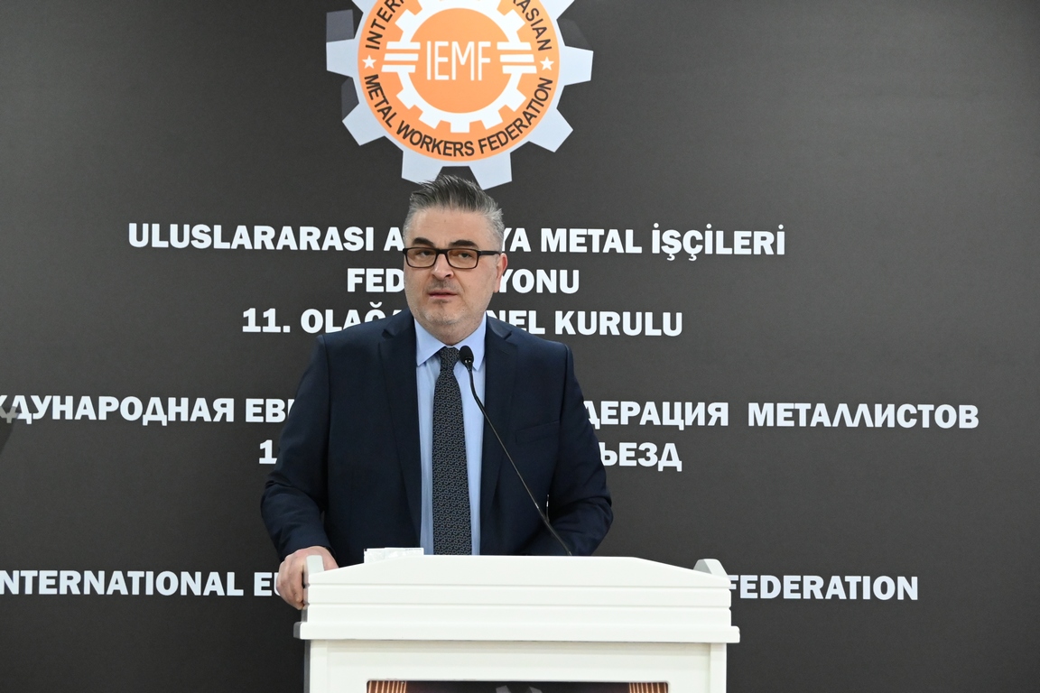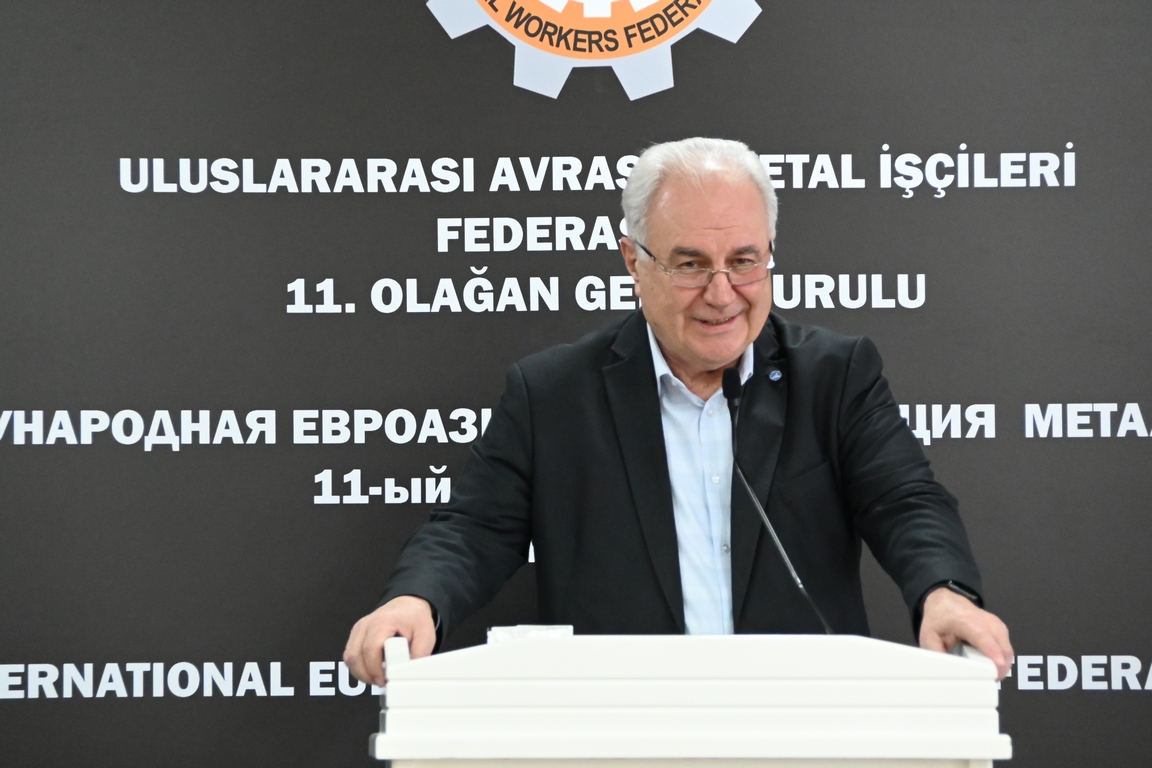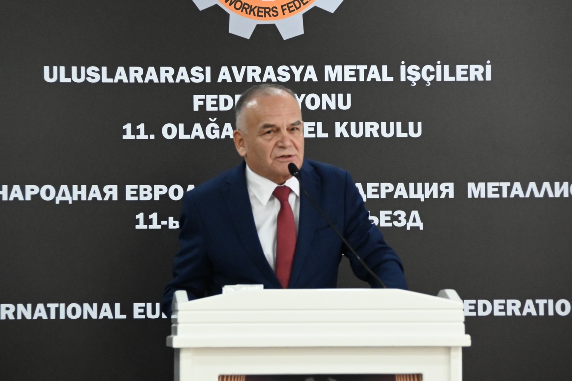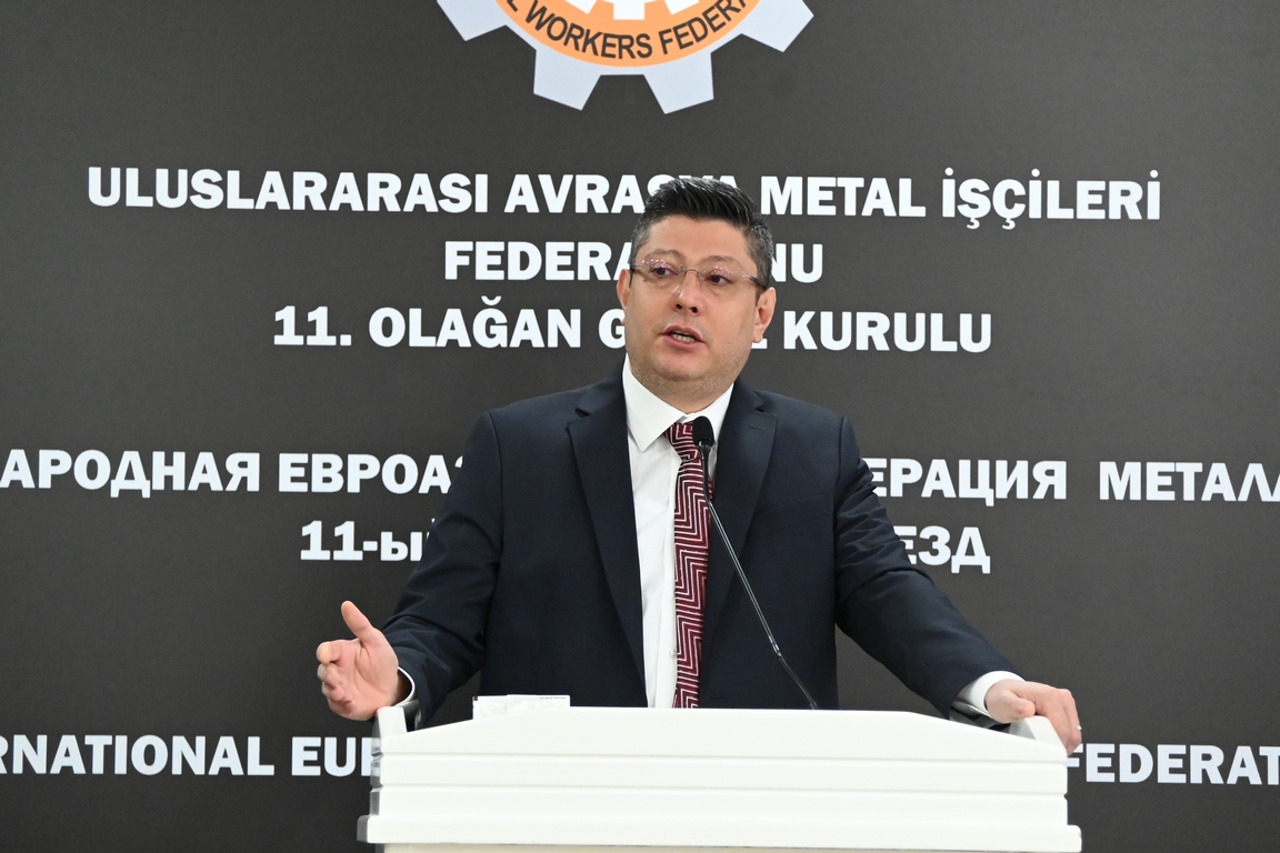 Değerli arkadaşlarım, her zaman dile getirdiğimiz gibi dünyada değişimin merkezi olarak kabul edilen Avrasya coğrafyasında enerji dönüşümünden dijitalleşmeye, yapay zekâdan yeşil sanayiye kadar uzanan bu yeni dönemde bölgemiz, küresel ekonominin ve üretimin geleceğini belirleyen temel eksenlerden biri haline gelmiştir. Son yıllarda yaşanan küresel krizler, enerji ve tedarik maliyetlerindeki artışlar, iklim politikalarının yeniden şekillenmesi ve üretim teknolojilerinin dönüşümü işçi sınıfının dayanışmasını ve örgütlü mücadelesini her zamankinden daha önemli kılmıştır. Avrasya bölgesi sanayi, maden, enerji ve metal sektörleri başta olmak üzere büyük bir üretim potansiyeline sahiptir. Bu durum da Avrasya Metal İşçileri Federasyonu’nun değerini ve önemini her geçen gün artırmaktadır.