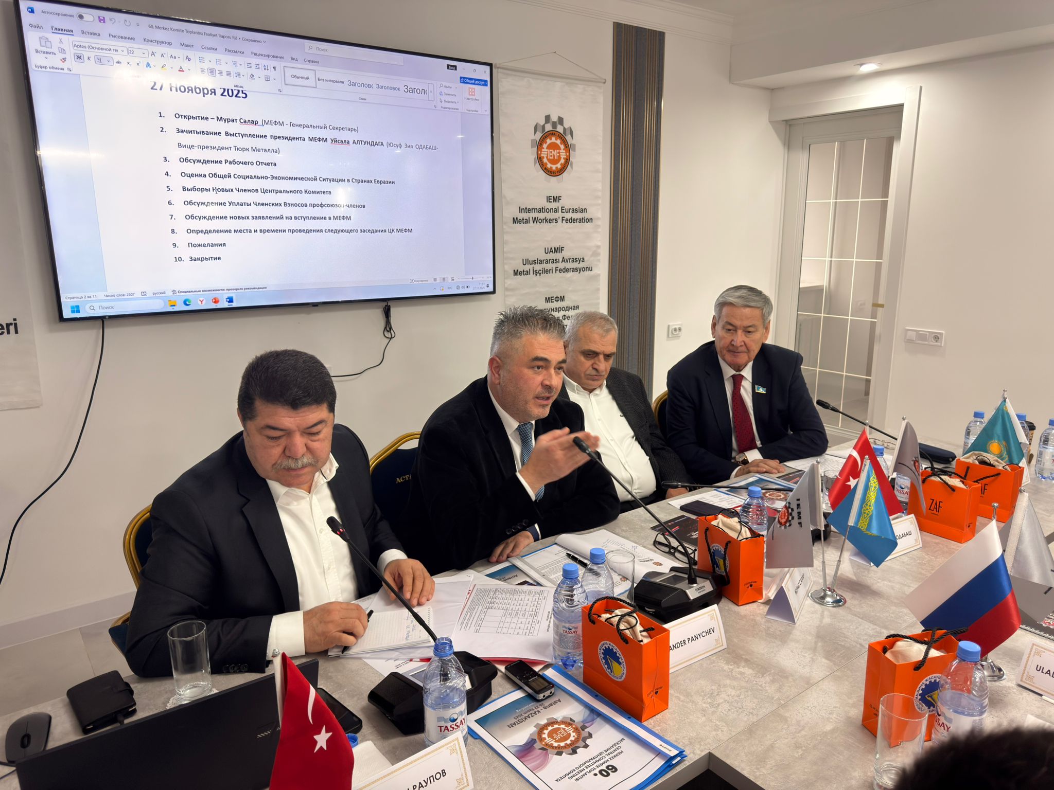 Uluslararası Avrasya Metal İşçileri Federasyonu’nun 60. Merkez Komitesi, 26-27 Kasım 2025 tarihleri arasında Kazakistan’ın başkenti Astana’da toplandı. 1994 yılındaki kuruluşunun ardından 60.’sı gerçekleştirilen toplantıya Türkiye, Azerbaycan, Rusya Federasyonu, Kazakistan, Tacikistan, Özbekistan, Moldova, Gürcistan ve Belarus’tan üye sendikalarının yetkililerinin yanı sıra çok sayıda Kazak sendikacı katıldı.
