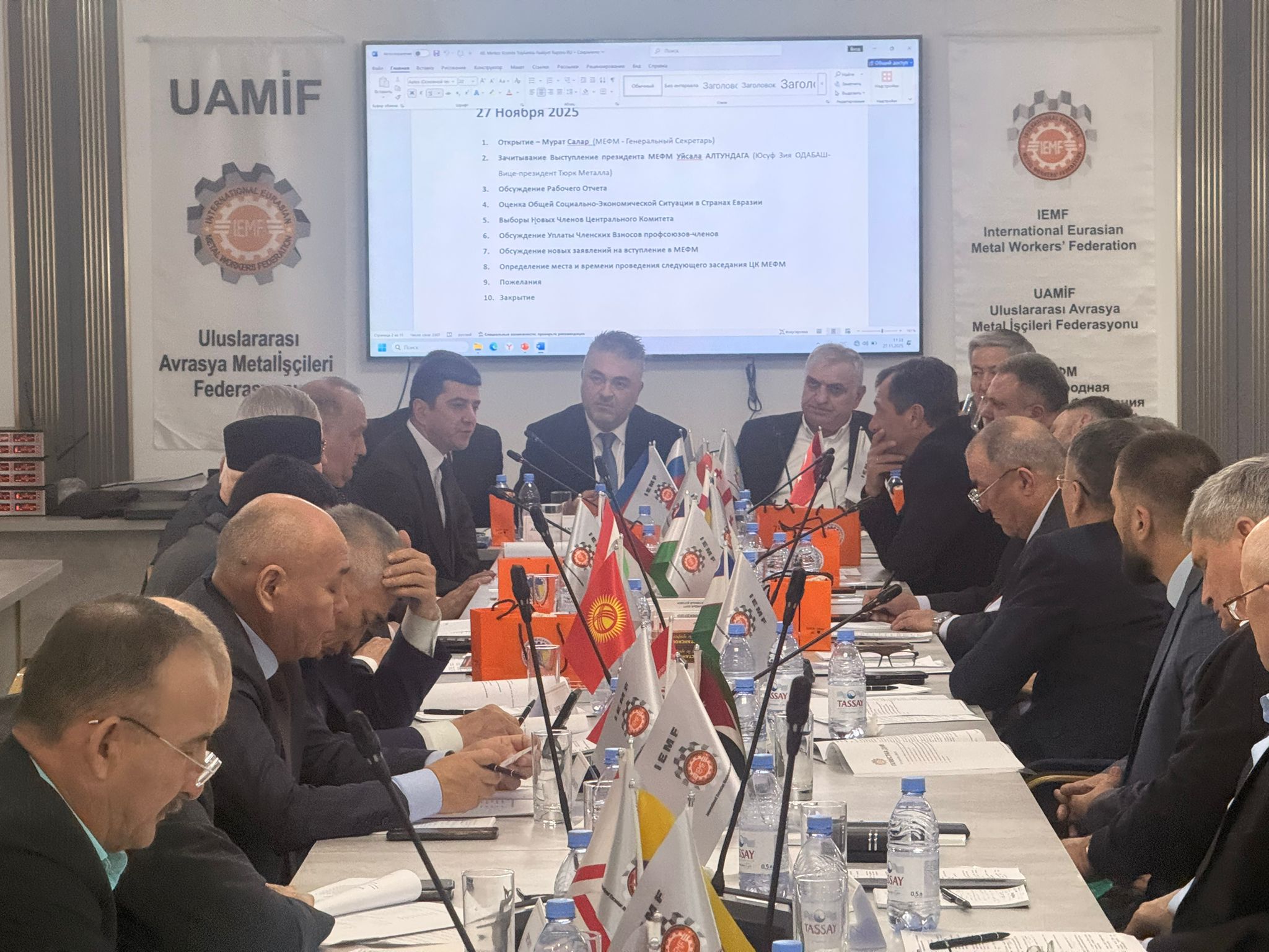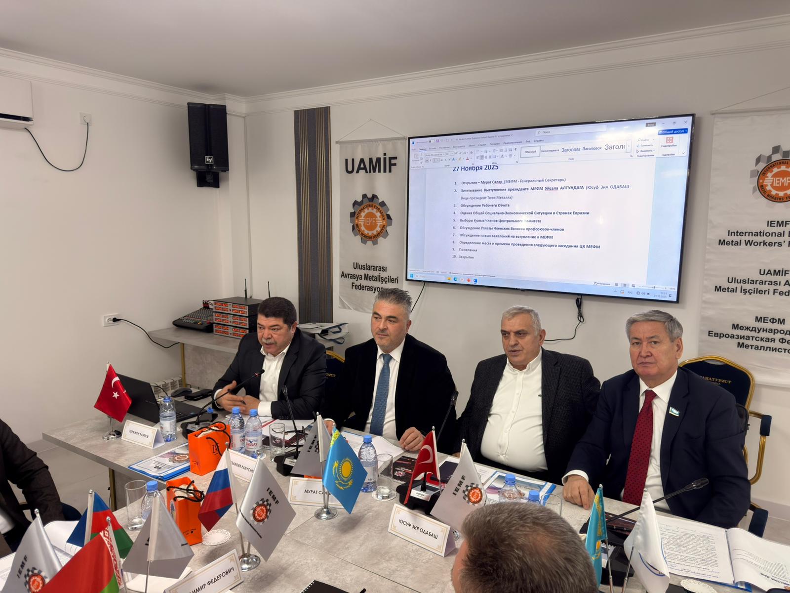 Metal ve maden sektörlerinde faaliyet gösteren üye sendikaların ev sahipliğinde düzenlenen UAMİF Merkez Komite toplantısında, çalışma raporunun müzakeresi akabinde Avrasya ülkelerinde sosyal ve ekonomik durum değerlendirildi ve merkez komiteye yeni üye seçimi gerçekleştirildi.