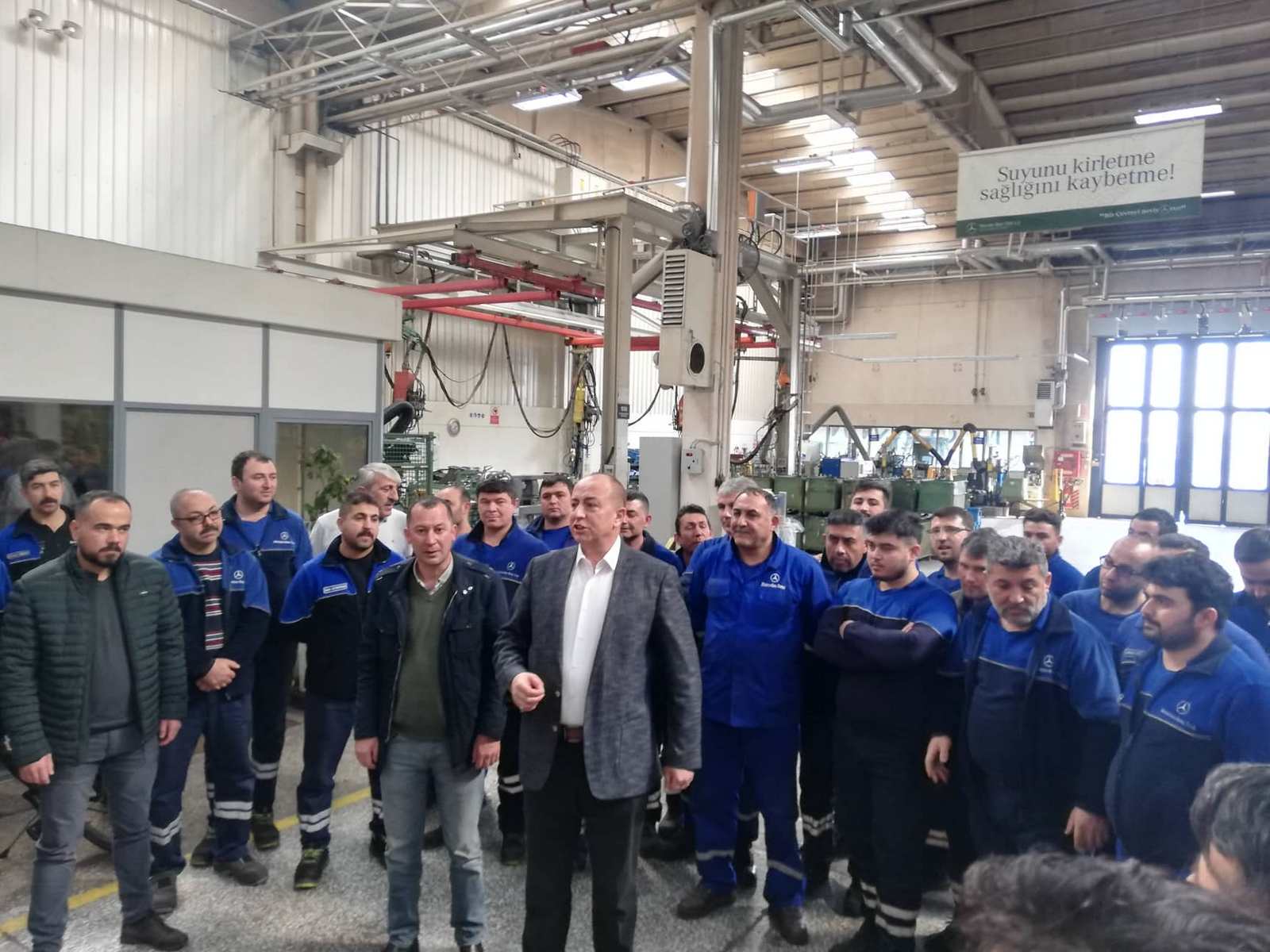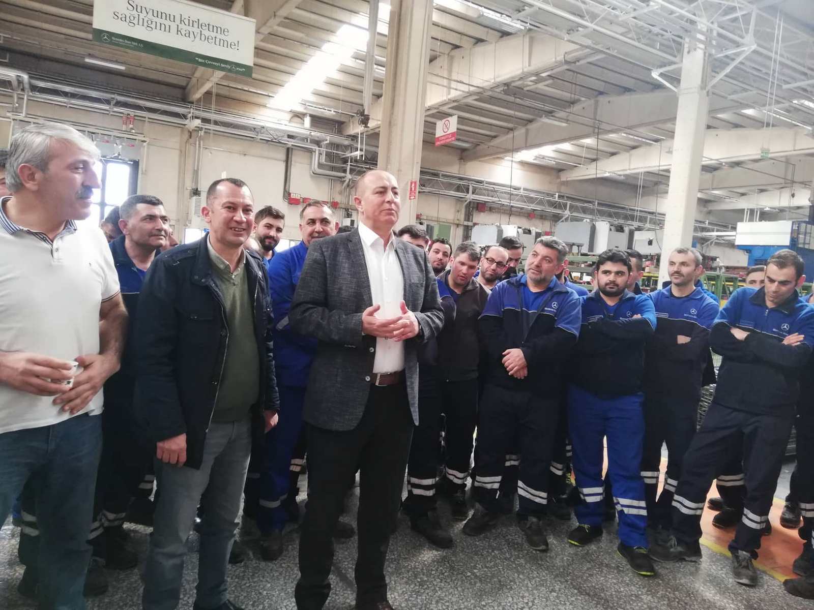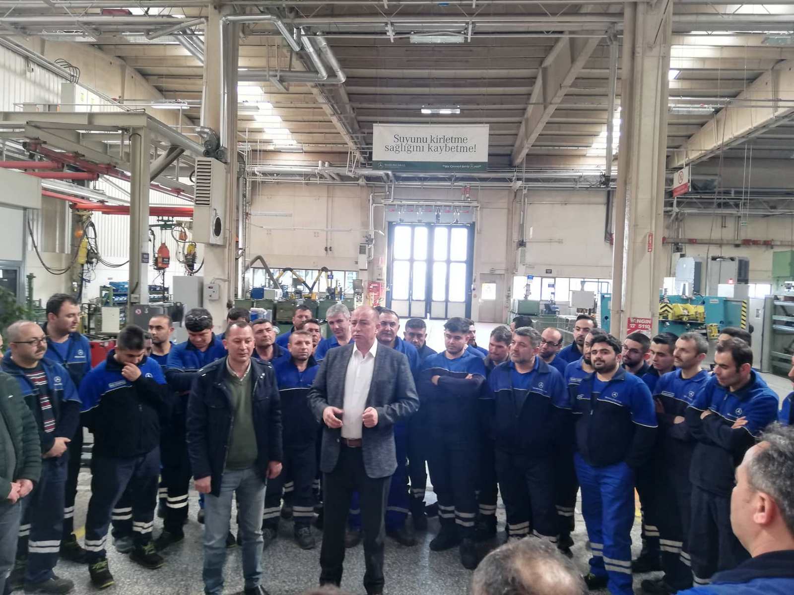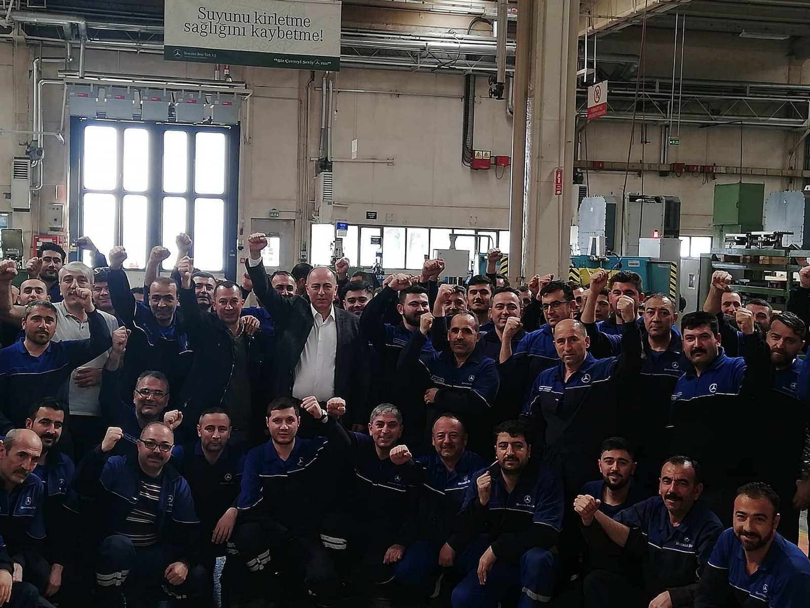 2019 - 2021 Mess Grup Toplu İş Sözleşmemiz sonrası Şubemize bağlı Mercedes Benz Türk A.Ş. işyeri ziyaretinde bulunan Şube Başkanımız Muhterem Taşdemir, Hol 3 Bant Besleme ve Parça İmalat bölümlerinde tezgahları başında çalışan üyelerimizle görüşerek kolaylıklar diledi ardından pasta kesildi.