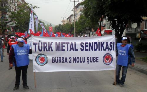 Türk-İş ve Kamu-Sen‘in Bursa Kent Meydanı’nda birlikte düzenlediği 1 Mayıs etkinlikleri coşku ile tamamlandı. Kent meydanında düzenlenen 1 Mayıs kutlamalarına Türk Metal Sendikamızın Genel Başkanı Pevrul Kavlak ve Genel Yönetim Kurulumuz ile beraber örgütlü olduğumuz işyerlerimizdeki binlerce emekçi arkadaşlarımızda katıldılar.