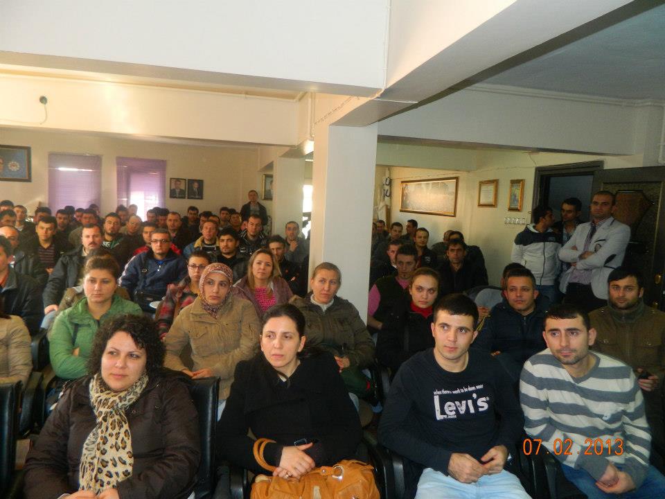 Delphi Otomotiv Çalışanlarımız 7 Şubat Perşembe Günü 00:00-08:00 Vardiyası Çıkışında 120 Kişilik Bir Grupla Şubemizi Ziyaret Ettiler. Teşkilatlanmanın Önemine Dikkat Çeken Şube Başkanımız Zafer Öztürk Ve İcra Kurulumuz; Tabanda Kuvvetli Bir Çalışmanın Doğuracağı Olumlu Sonuçlardan Ve Sözleşmenin 3.Oturumundan Bahsettiler.