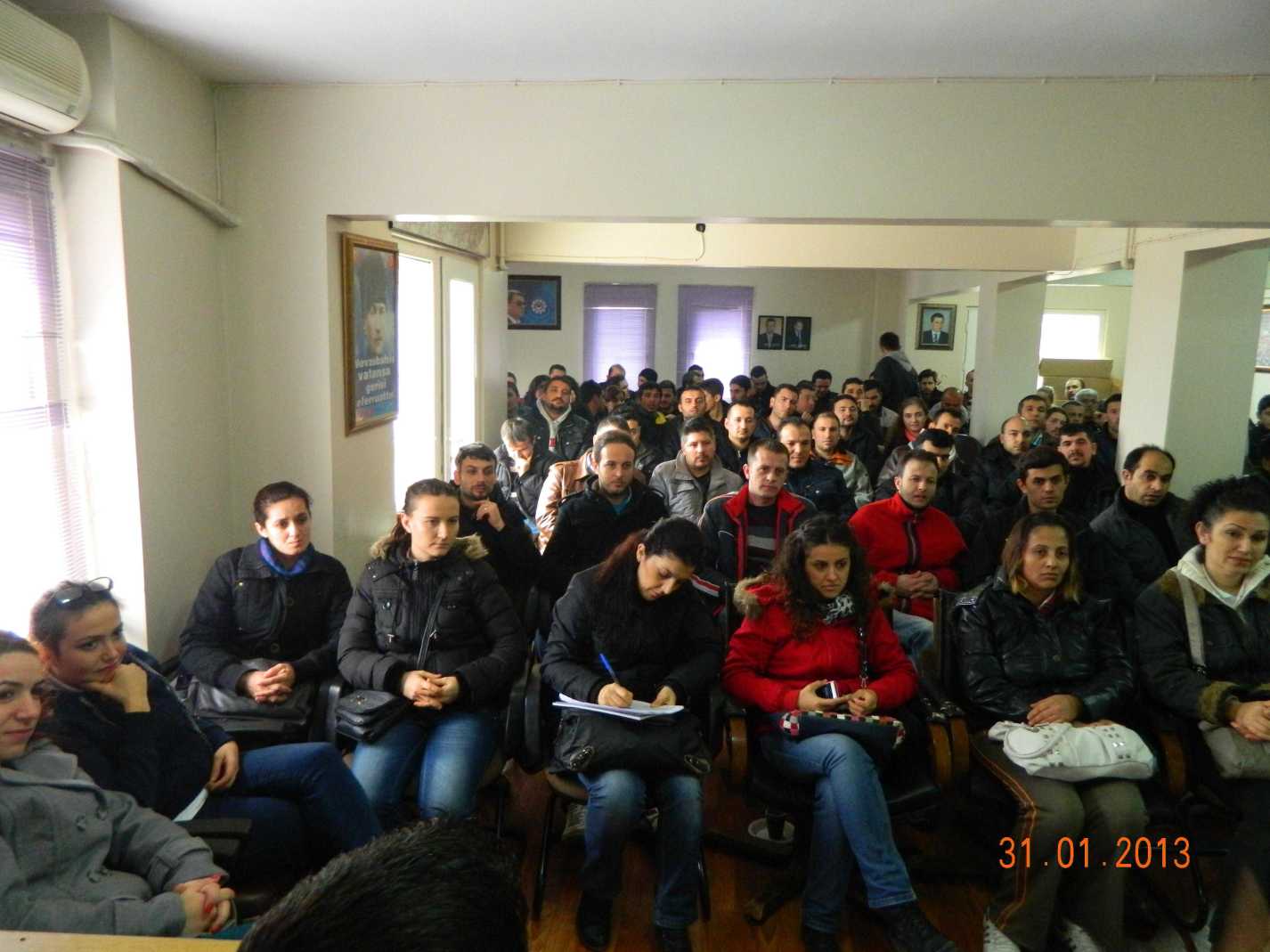Delphi A vardiyası ünite temsilcileri 31 Ocak Perşembe günü, gece vardiya çıkışı 135 kişilik bir üye katılımıyla Şubemizi ziyaret ettiler. Teşkilatlanma adına yapılan çalışmalar ünite temsilcilerimizle paylaşıldı. Yönetim Kurulu üyemiz -Delphi Baştemsicimiz Hüseyin Gök ve A vardiyası temsilcilerimiz yaptıkları konuşmada; tabana daha hızlı ve akıcı yayılmanın nasıl olacağını ünite temsilcilerimize aktardılar. Bütün işletmede beş tane temsilcimize yardımcı olması gereken kişilerin bu kadrolardan olması gerektiğine değinen temsilcilerimiz yapılan kahvaltının ardından ünite temsilcilerimizle birebir sohbet ettiler.