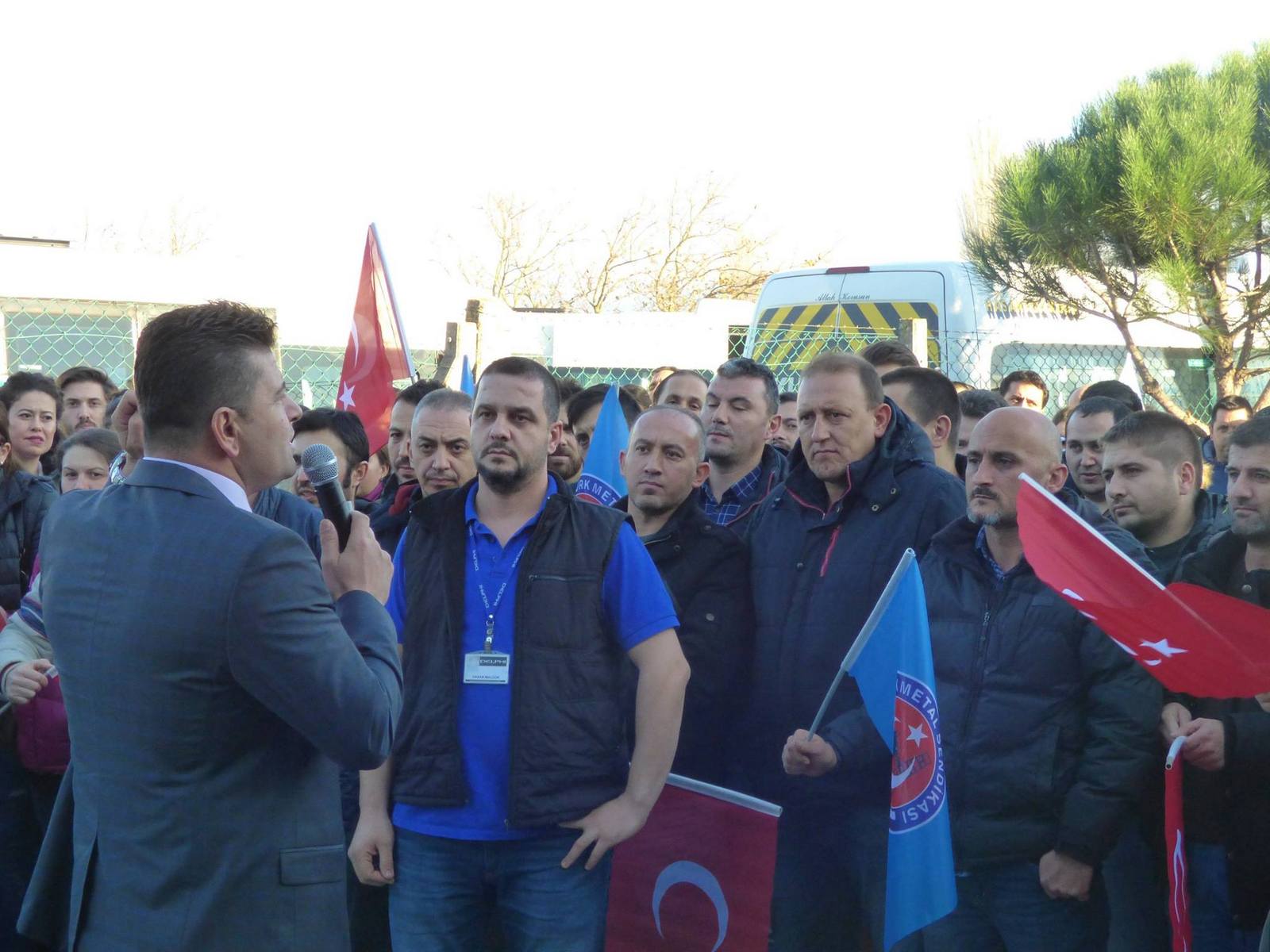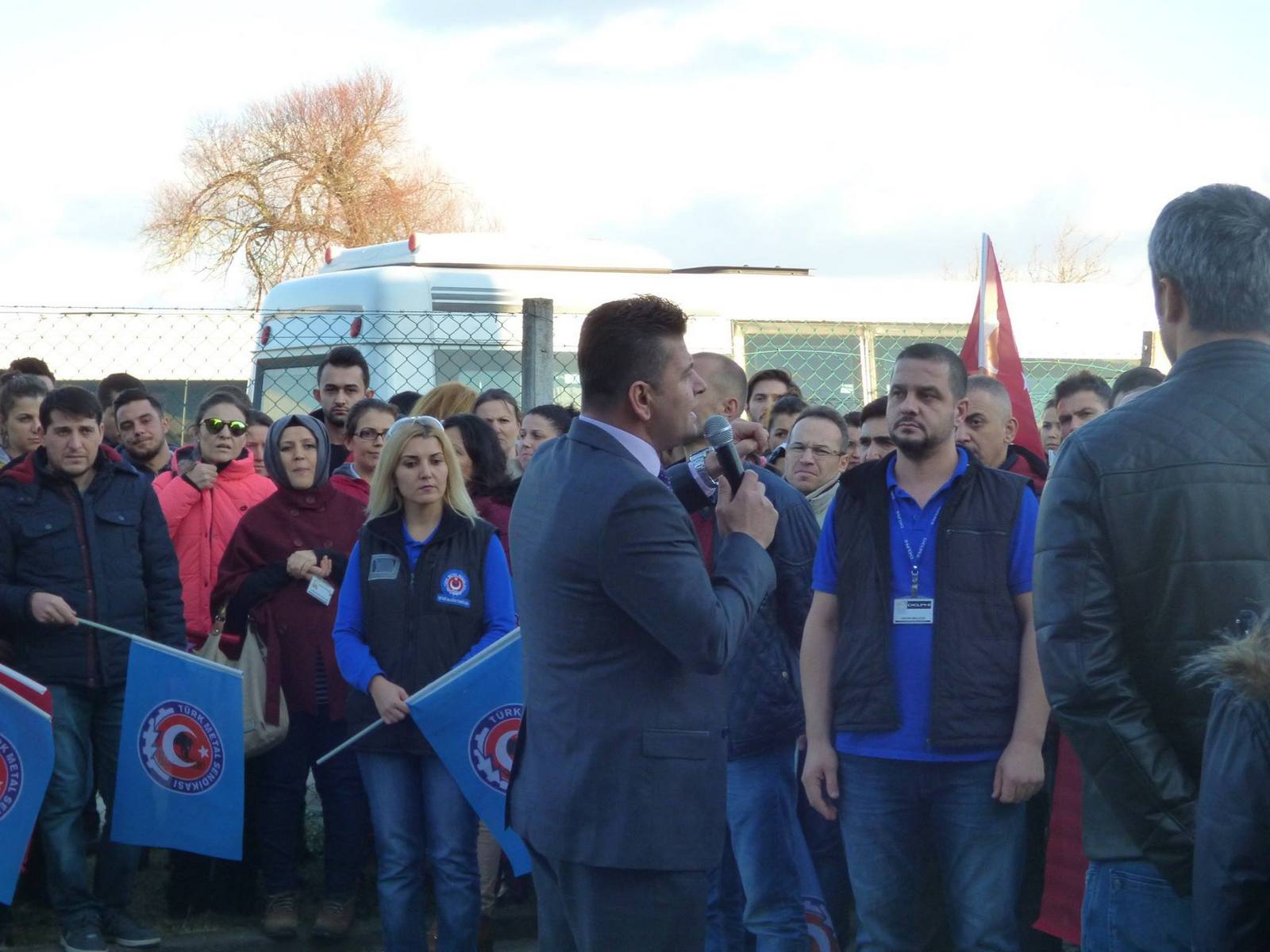 Şube Başkanımız Mesut ERDEM, Delphi işyerinde üyelerimiz ile birlikte kortej eşliğinde yürüyüş gerçekleştirirken diğer işyerlerinde aynı zamanda yürüyen üyelerimiz MESS’e tepkilerini dile getirerek Kolkola ıslıklar ve sloganlar atarak işyerinden ayrıldılar.