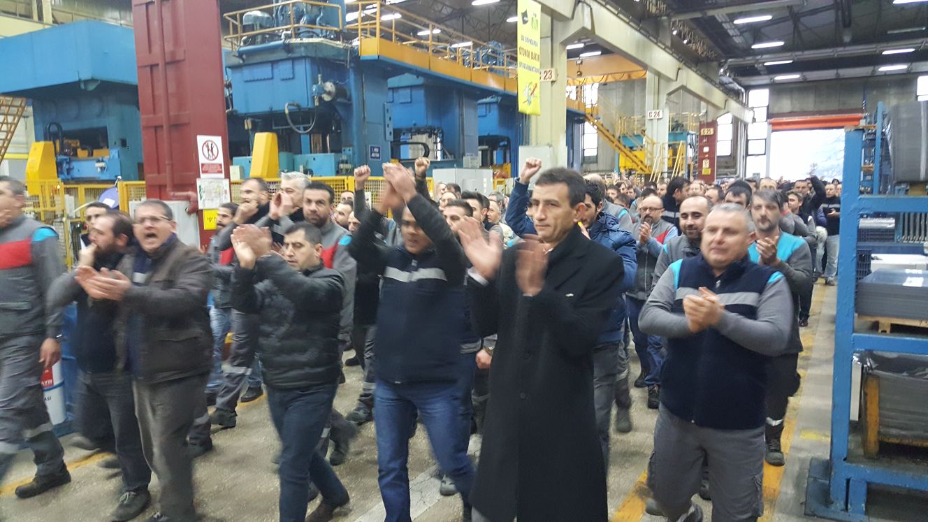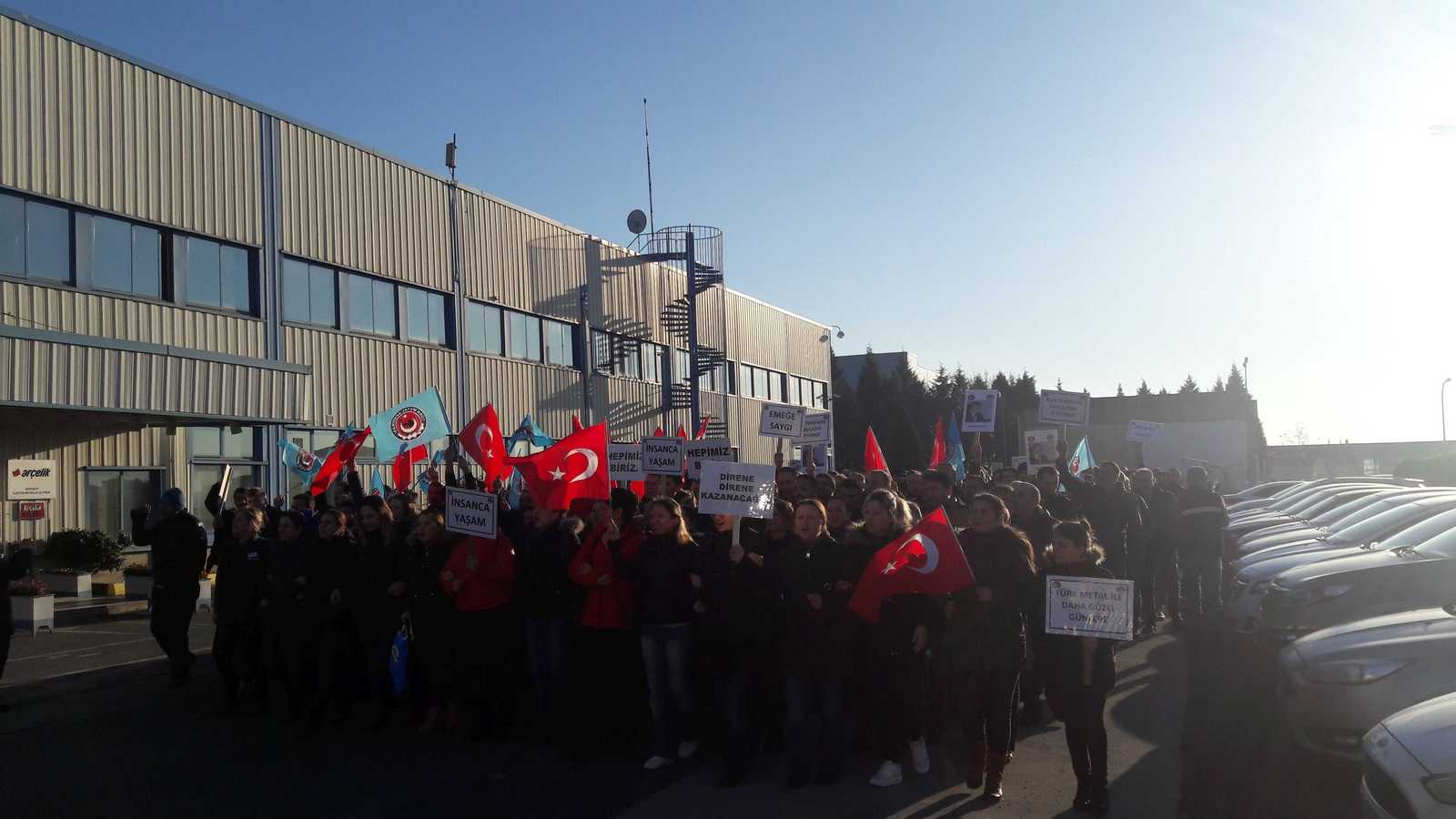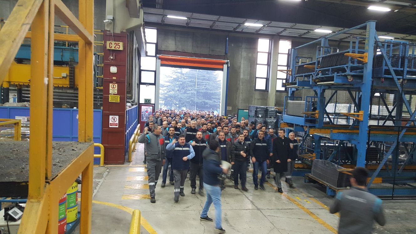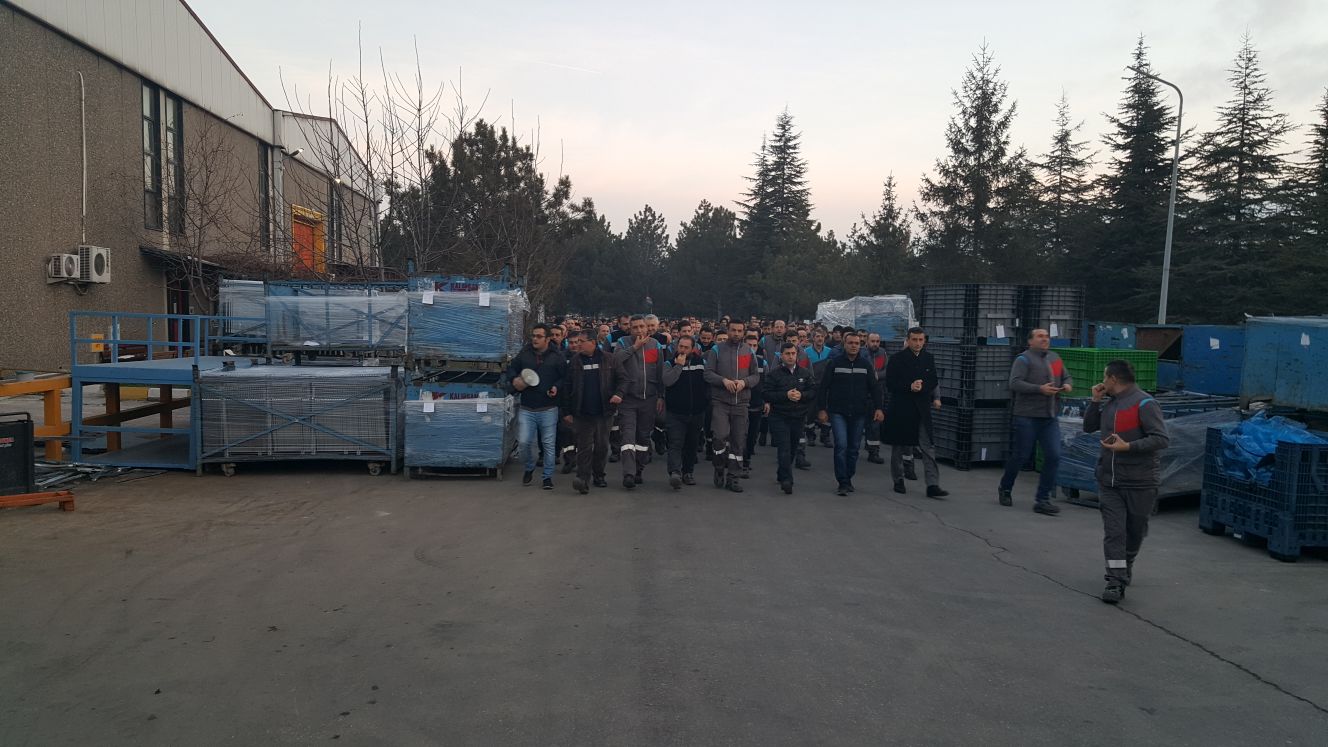 Şubemize bağlı BSH Ev Aletleri, Hema Endüstri, Arçelik ve Dinex Egzoz İşyerlerinde 08.00-16.00 vardiyasında çalışan üyelerimiz MESS’ in adaletsiz ve kabul edilemez teklifine karşı 07 Aralık Perşembe günü vardiya çıkışlarında yürüyüş eylemi yaptılar. Şube Başkanımız Murat KOÇAK, üyelerimizle birlikte kol kola fabrika önünden servis alanına kadar alkış ve sloganlarla yürüdü.