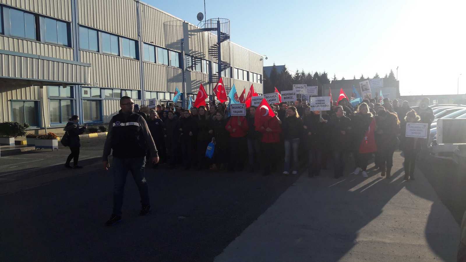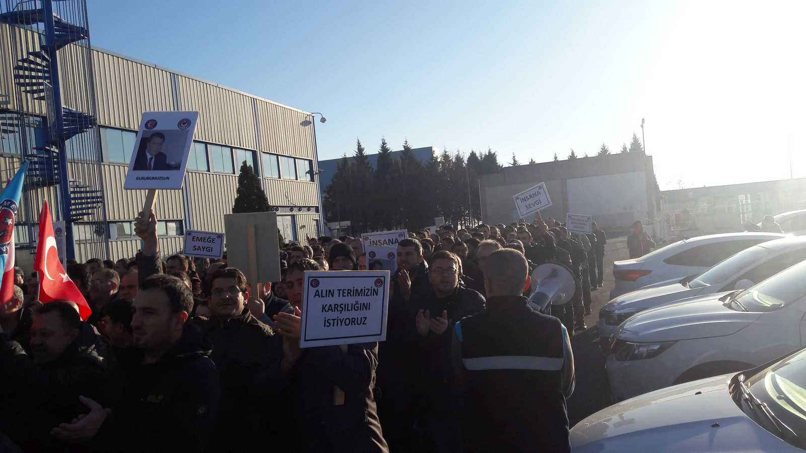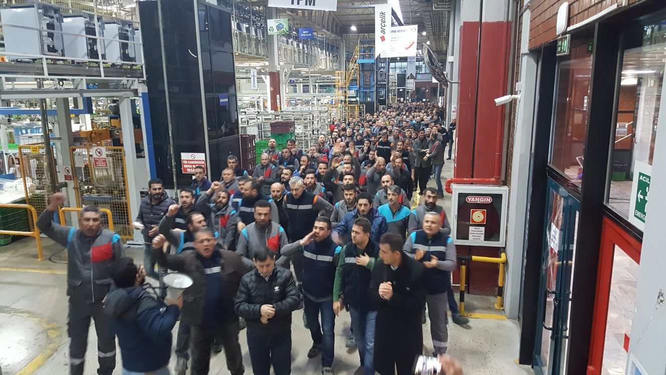 Şubemize bağlı BSH Ev Aletleri, Hema Endüstri, Arçelik ve Dinex Egzoz İşyerlerinde 08.00-16.00 vardiyasında çalışan üyelerimiz MESS’ in adaletsiz ve kabul edilemez teklifine karşı 07 Aralık Perşembe günü vardiya çıkışlarında yürüyüş eylemi yaptılar. Şube Başkanımız Murat KOÇAK, üyelerimizle birlikte kol kola fabrika önünden servis alanına kadar alkış ve sloganlarla yürüdü.