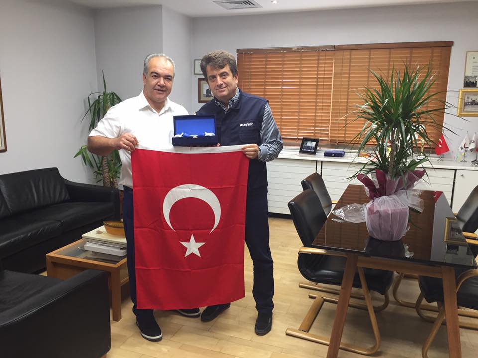 Şube Başkanımız Şeref ÖZCAN, Şube Yönetim Kurulumuz ile birlikte 17 Ağustos 2017 tarihinde Arçelik-LG Klima işyeri Genel Müdürü Emin BULAK'ı temsilcilerimizle beraber ziyaretimizde Genel Başkanımız Pevrul KAVLAK'ın adına hediyesini takdim ederek yeni görevinde başarılar diledi.