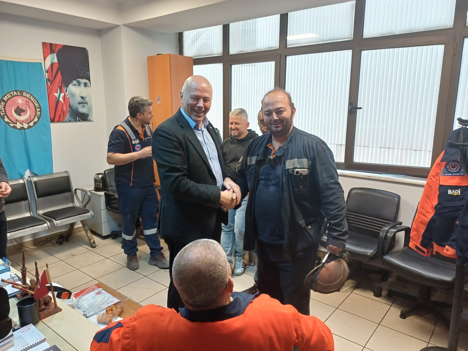 Şube Başkanımız İsmail Çiçek, Çolakoğlu Metalurji İşyeri Genel Koordinatörü Cahit Aşkın’ı ziyaret etti. Vardiya giriş çıkışında Sendika Temsilciliğimizde üyelerimiz ile sohbet etti.