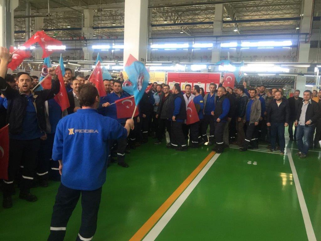 Fıcosa Internatıonal işyeri adına Mess ile Sendikamız arasında 11.10.2016 tarihinde başlayan Toplu İş Sözleşme görüşmelerinde uyuşmazlık ve arabulucu süresi sona erdi. Türk Metal Sendikası Genel Merkez Yönetim Kurulumuzun 20.02.2017 tarih ve 412 sayılı yazısı ile grev kararı alınmıştır, bu karar işyerinde aynı gün içerisinde Şube Başkanımız Kemal Durmaz tarafından ilan panosuna asılarak üyelerimize duyuruldu.