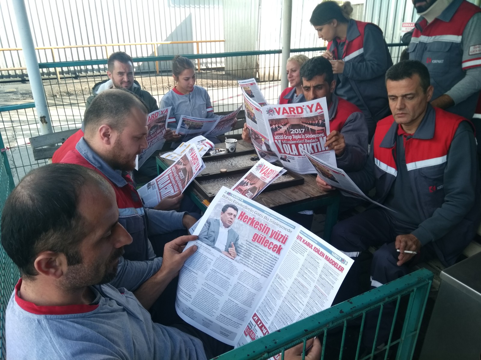 Şubemize bağlı işyerlerinde 06 Kasım 2017 tarihinde MESS Grup Toplu İş Sözleşmesi süreci ve gelişmelerini açıklayan, Vardiya Gazetesinin dağıtımını yapılarak üyelerimize içeriği hakkında bilgi verildi.