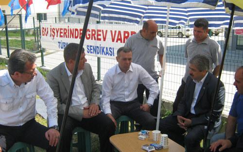 20 Nisan 2012 Cuma günü başlayan ve halen devam eden grevimize destek olmak için grev çadırımıza ziyaretler sürüyor. 26 Nisan 2012 Perşembe günü Petrol-iş Bursa Şube Başkanı Nuri Han ve Gemlik Gübre işyeri temsilcisi Ali Apak,Türk Metal Sendikası Bursa Nilüfer Şube Başkanı Ruhi Biçer, Bursa Osmangazi Şube Başkanı Y.İsmail Cirit ve şube icra kurul üyeleri grev de olan arkadaşlarımızı ziyaret ederek bu mücadelemizde sonuna kadar destek olacaklarını söylediler.