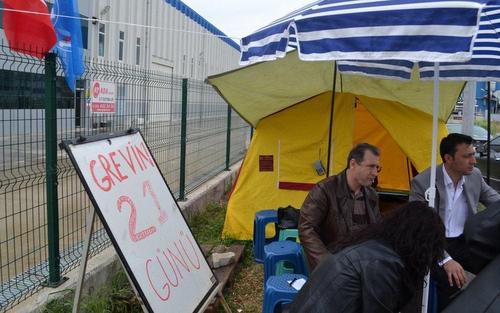 Serbest Bölge de Komvek Karoser’de devam eden grevin 21.gününde grevdeki işçilere destek vermek amacı ile Türk-İş 8.Bölge Temsilcisi Sabri Özdemir Bursa’da şubesi bulunan Türk-İş’e bağlı sendikalardan Türk Metal, Petrol-İş, Orman-İş, Tarım-İş, Teksif, Tümtis, Toleyiş, Kristal-İş, Sağlık-İş sendikalarının şube başkanlarıyla birlikte grevdeki işçileri ziyaret ettiler.