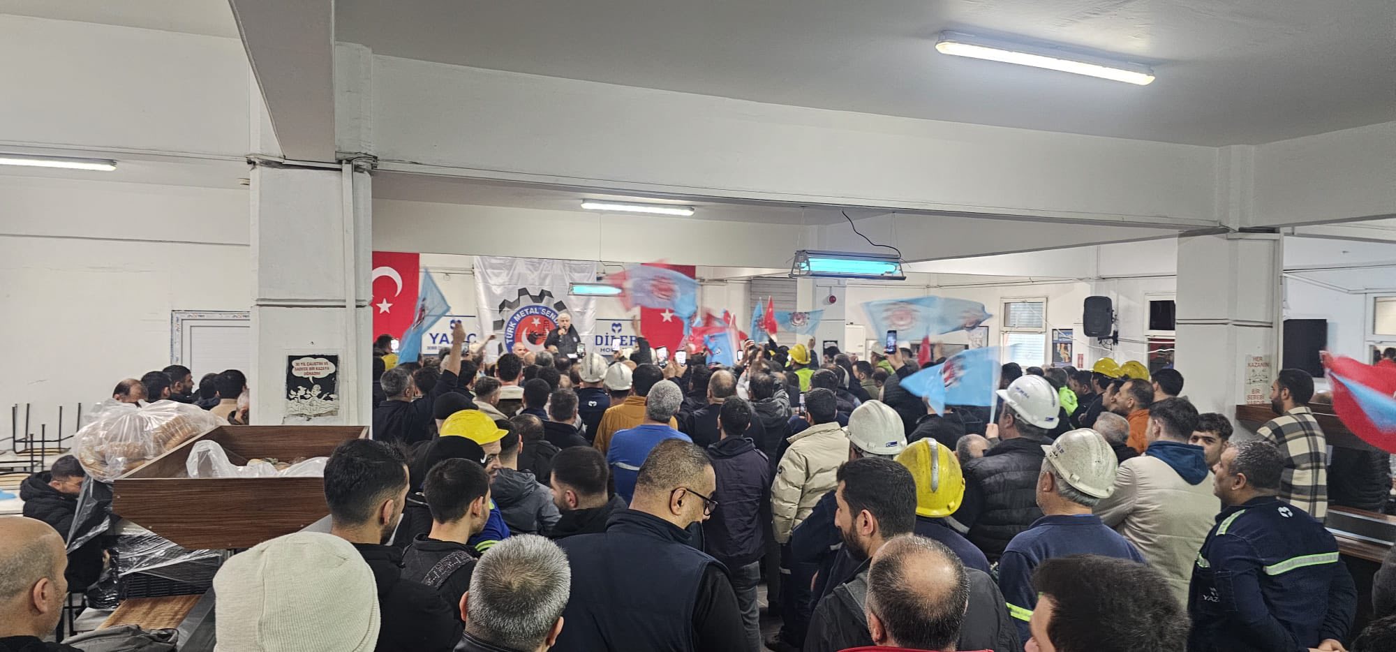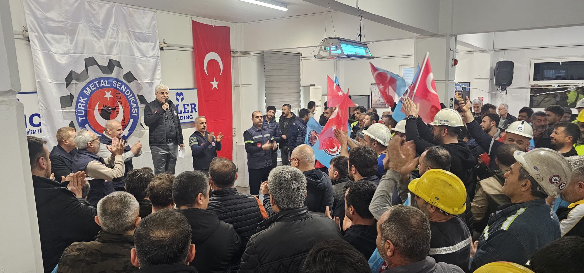 Şubemize bağlı Yazıcı Demir Çelik ve Eti Toprak işyerlerimizde çalışan üyelerimizi ilgilendiren 2025-2027 dönemini kapsayan Toplu İş Sözleşmemizi 10 Şubat salı günü büyük bir zaferle imzaladık. Şube başkanı Çakır Varan işyerlerimizde çalışan üyelerimizi ziyaret ederek Toplu İş sözleşmemiz hakkında bilgi aktararak kazanımlarımızı anlattı. Büyük bir sevinç içinde olan üyelerimiz sendikamıza ve şube başkanı Çakır Varan’a teşekkür ettiler. Bütün üyelerimize hayırlı olsun dileklerinde bulunan şube başkanı Çakır Varan liderimiz genel başkanımız sayın Uysal Altundağ beye desteklerinden dolayı teşekkürlerini sundu.
