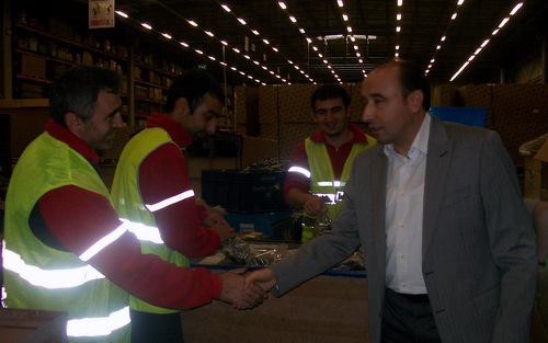Şube Başkanımız Halil Faki Erdal 2011 Yılı Aralık ayında Arçelik, Alarko, Birinci Oto, Böhler, Delphi, Ford Yedek Parça, Kerim Çelik, Mahle, Siemens, Stoeger, Ümran Boru, Aypaz Metal, Elmek Elektro Mekanik Sanayi, Evas Ev Aletleri, Gedore El Aletleri, K.D.S Pres Döküm, Nexsans, Thyssen Krupp işyerinde çalışan üyelerimizi ziyaret etti. İşyerlerini vardiya vardiya gezen Başkan Erdal, üyelerimizle tezgahları başında görüştü. Şube Başkanımız, tek tek üyelerimizin yeni yıllarını kutlayarak, birlik beraberlik mesajı verdi.