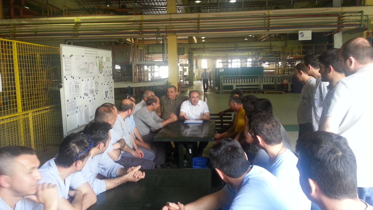 Şubemizde Mess’ e bağlı Arçelik, Aypaz, Alarko, Baymak, Böhler, Delphi, Emas, Evas, Ford Y.P, Kerim Çelik, Kds, Nexans, Stoeger ve Takosan İşyerlerinde Şube Başkanımız Halil Faki ERDAL 31 Mayıs Cuma günü başlatmış olduğu imzalanan Mess TiS’ inin anlatımını, 3 vardiyayı’ da dolaşarak üyelerimize detaylı bir şekilde bilgilendirme yaptı. Şube Başkanımızın Yapmış olduğu bu anlatım 10 Haziran Pazartesi günü tamamlanmıştır. Üyelerimiz de imzalanan bu sözleşme için Genel Başkanımız Pevrul KAVLAK, Genel Merkez Yöneticilerimiz ve emeği geçen Şube Başkanlarımıza ayrıca teşekkürlerini ilettiler. Üyelerimiz coşkuyla karşıladılar…