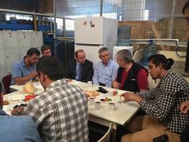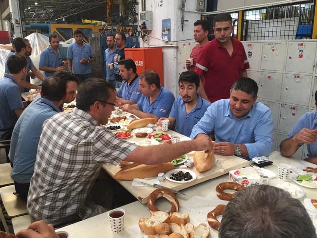 Şube Başkanımız Halil ERDAL 04 Ekim Salı günü şubemize bağlı Arçelik işyeri ÇMİ bölümü Plastik takımında çalışan üyelerimize Temsilciliğimizin organize etmiş olduğu Kahvaltı Programına ÇMİ yeni Üretim Direktörü Atilla UZ, Tüketici Hizmetleri Ürün Direktörü Hüseyin Şerif BEYAZTAŞ ve Üretim Müdürü Haşmet ÇİZMECİ ile birlikte katıldılar.Başkan ERDAL sonrasın da ÇMİ Butik bandında çalışan üyelerimiz ile çay gruplarında bir araya gelerek sohbet etti.