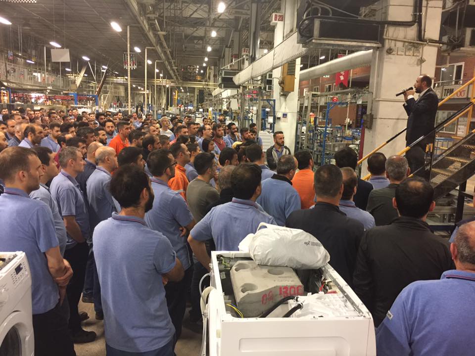 Şube Başkanımız Halil ERDAL, 19 Haziran Pazartesi günü Şubemize bağlı Arçelik işyeri Mekanik takımı, Plastik takımı, Üretim Bantları, Arge, Giriş Kalite, YDM, Bloke, Sök, Mamül Depo, Forklift, Servis Yedek Parça bölümleri 08:00 – 16:00 , 16:00 – 24:00 ve 24:00 – 08:00 vardiyalarında çalışan üyelerimizi ziyaret ederek 2017 grup TİS taslak süreci hakkında bilgilendirmede bulundu ve yaklaşan Ramazan Bayramlarını kutladı.