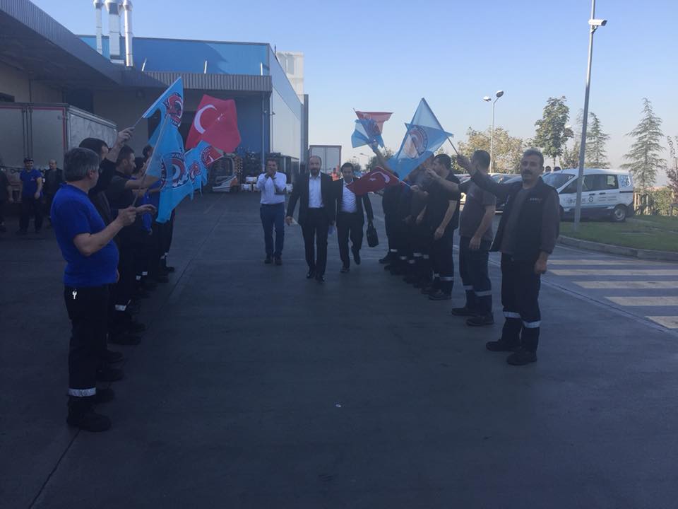 Şube Başkanımız Halil ERDAL; Anlaşma zeminini üyelerimizle paylaştıktan sonra işyeri Yöneticilerinden Yönetim Kurulu Başkanı Kemal Demirbaş, Yönetim Kurulu Üyesi Yakup Birinci, İnsan Kaynakları Müdürü Yasemin Genç ve işyeri Temsilcilerimizin katılımıyla 20 Ekim 2017 tarihinde yaptığı son toplantı ile anlaşma tutanağını imzaladı.