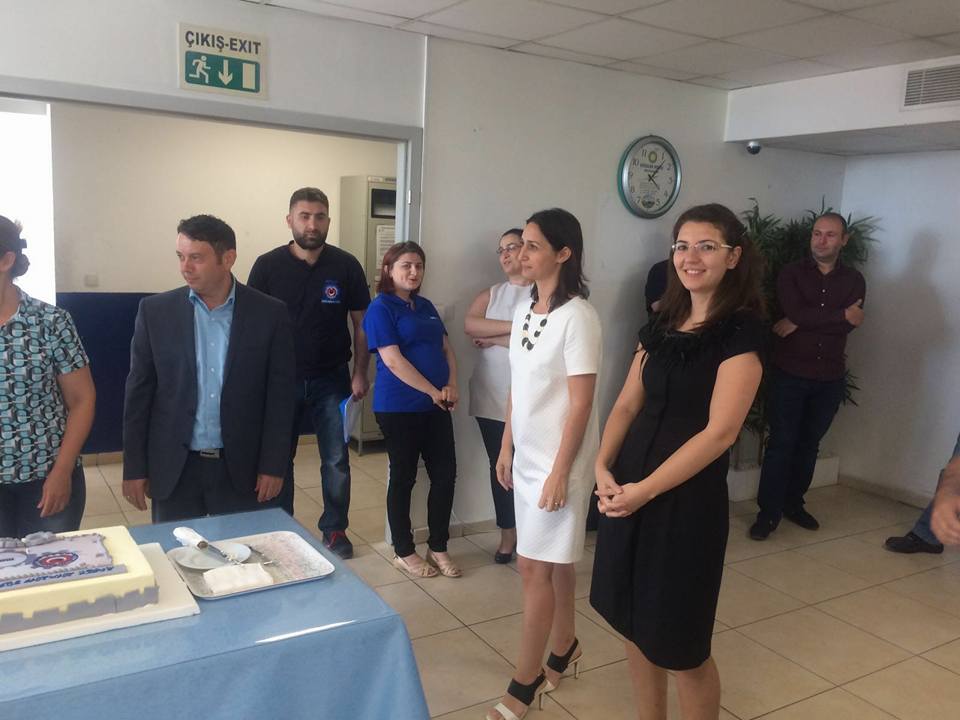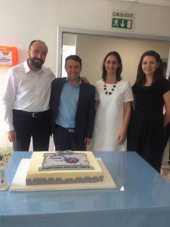 Şube Başkanımız Halil ERDAL, 6 Temmuz Perşembe günü Mahle işyerimizin 3.Dönem Toplu İş Sözleşmesi 13 Haziran tarihinde imzalandı bu sebeple işyeri Temsilciliğimiz ile işyeri yetkilileri tarafından ortaklaşa düzenlenen imza töreninde Genel Nüdür İdris ÖZKURT, İK Direktörü Candan HAFISOĞLU, İK Müdürü Esra YILDIZ ve üyelerimiz ile bir araya gelerek işyeri yemekhanesinde pasta kesilerek kutlandı.