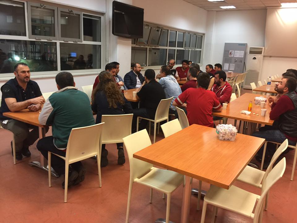 Şube Başkanımız Halil ERDAL, şubemize bağlı Siemens ( Kartal ) işyeri 16:00 – 24:00 vardiyasında çalışan üyelerimiz ile 30 Mayıs 2017 salı günü bir araya gelerek orucunu açtı. İftar sonrası çay saatlerinde üyelerimiz ile güncel ve genel konular hakkında sohbet etti.