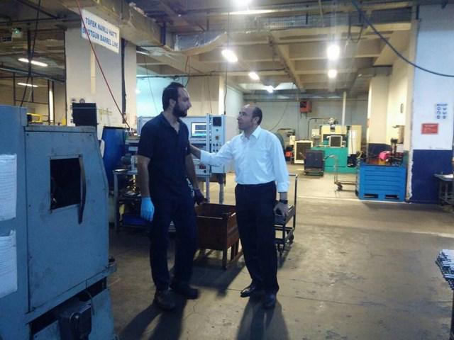 Şube Başkanımız Halil ERDAL 01 Eylül Perşembe günü şubemize bağlı Stoeger işyeri 08.00 - 16.00 ve 16.00 - 24.00 vardiyalarında çalışan üyelerimizi tezgahları başında ziyaret ederek yaklaşan Kurban Bayramlarını kutladı.