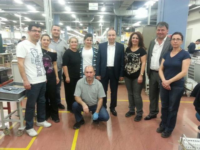 Şube Başkanımız Halil Erdal, 24 Mart - 02 Nisan tarihleri arasında şubemizin yetkili olduğu Arçelik, Alarko, Aypaz, Baymak, Birinci Oto, Böhler, Elbi, Elmek, Emas, Evas, Ford Yedek Parça, Gedore, Kds, Kerim Çelik, Mahle, Nexans, Thyssenkrupp, Siemens(Kartal), Siemens(Gebze),Stoeger, Takosan, Ümran Boru işyerlerini vardiya vardiya gezerek üyelerimizi tezgâhları başında ziyaret etti. Başkan Erdal ziyaretlerinde üyelerimize genel ve güncel konularda bilgi verdi, soruları yanıtladı.