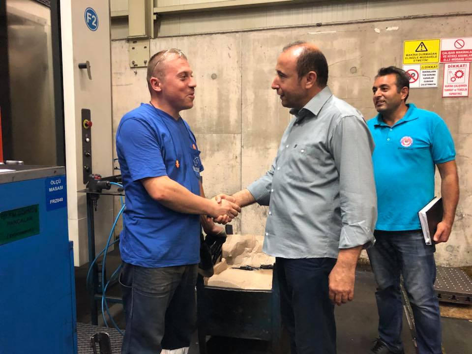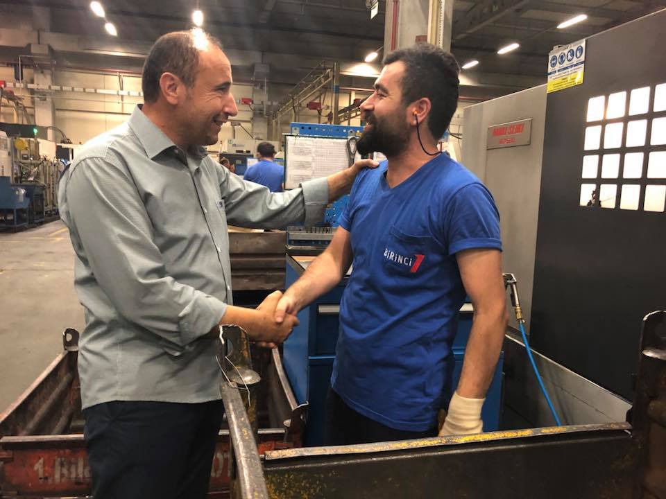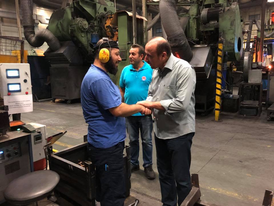 Şubemize bağlı Birinci otomotiv, Baymak, Alarko, Evas, Nexans, Stoeger, Thyssenkrupp, Böhler, Kipsan, Bantboru ve C.p.s. işyerlerinde 08:00-18:00 ila 22:00-08:00 vardiya saatlerinde çalışan üyelerimizi 01-07 Ağustos 2018 tarihleri arasında ziyaret eden Şube Başkanımız Halil ERDAL, yaklaşan Kurban Bayramlarını kutladı.