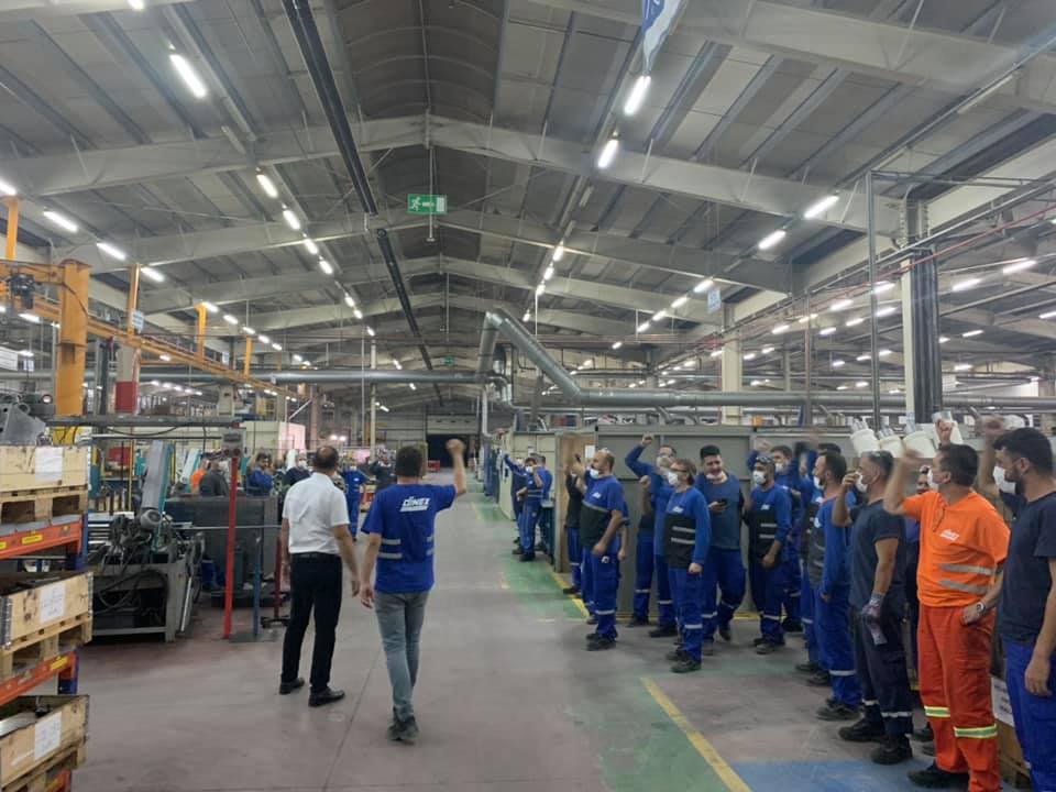 Şube Başkanımız Günay Özden, şubemize bağlı faaliyet gösteren Arçelik Elektronik İşletmesi, Arçelik Kurutucu İşletmesi, Başoğlu Kablo, Dinex Egzoz Fabrikası, Hema Endüstri, Schnee Metal, Ünika Kablo ve Wat Motor işyerlerimizde 08:00-16:00, 16:00-24:00 ve 24:00-08:00 vardiya saatlerinde ziyaret etti. Üyelerimiz ile tezgahları başında ve çalışma alanlarında güncel konular hakkında bilgi aktaran Başkan Özden, gelen soruları yanıtladı ardından yaklaşan Kurban Bayramını kutladı.