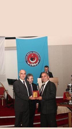 ERDEMİR’in 47. İşletme Yıldönümü Etkinlikleri kapsamında düzenlenen “Üniteler Arası Futbol Dostluk Turnuvası” Şampiyonu Sıcak Haddehaneler Baş Müdürlüğü takımı için düzenlenen Şampiyonluk Gecesi muhteşemdi. 23 Mayıs 2012 Çarşamba günü Büyük Anadolu Otel’de gerçekleştirilen şampiyonluk gecesine, Şube Başkanımız Yusuf Ziya Odabaş, Şube Sekreterimiz Metin Ercan, Şube Mali Sekreterimiz Sedad Taşdelen, İnsan Kaynakları ve İdari İşler Genel Müdür Yardımcımız Kaan Böke, Sendikamızın Yönetim Kurulu, Baş Temsilci ve İşyeri Temsilcilerimizin yanı sıra Erdemir’den bazı ünite yöneticileri, Formenler ve Teknisyenler Derneği Başkanı Ertuğrul İsa Bayramoğlu, şampiyon takımın oyuncu ve takım sorumluları ile Sıcak Haddehaneler Baş Müdürlüğü çalışan ve idarecileri ile katıldı. Geceyi yaptığı bir konuşmayla açan Şube Başkanımız Yusuf Ziya Odabaş, turnuvaya katılan tüm takımlara centilmence mücadelelerinden dolayı teşekkür etti ve turnuva sonucunda şampiyon olan Sıcak Haddehaneler takımının oyuncu ve idarecilerini de başarılarından dolayı kutladı.