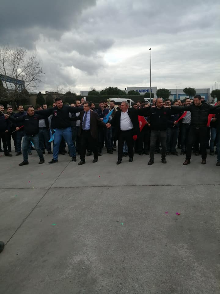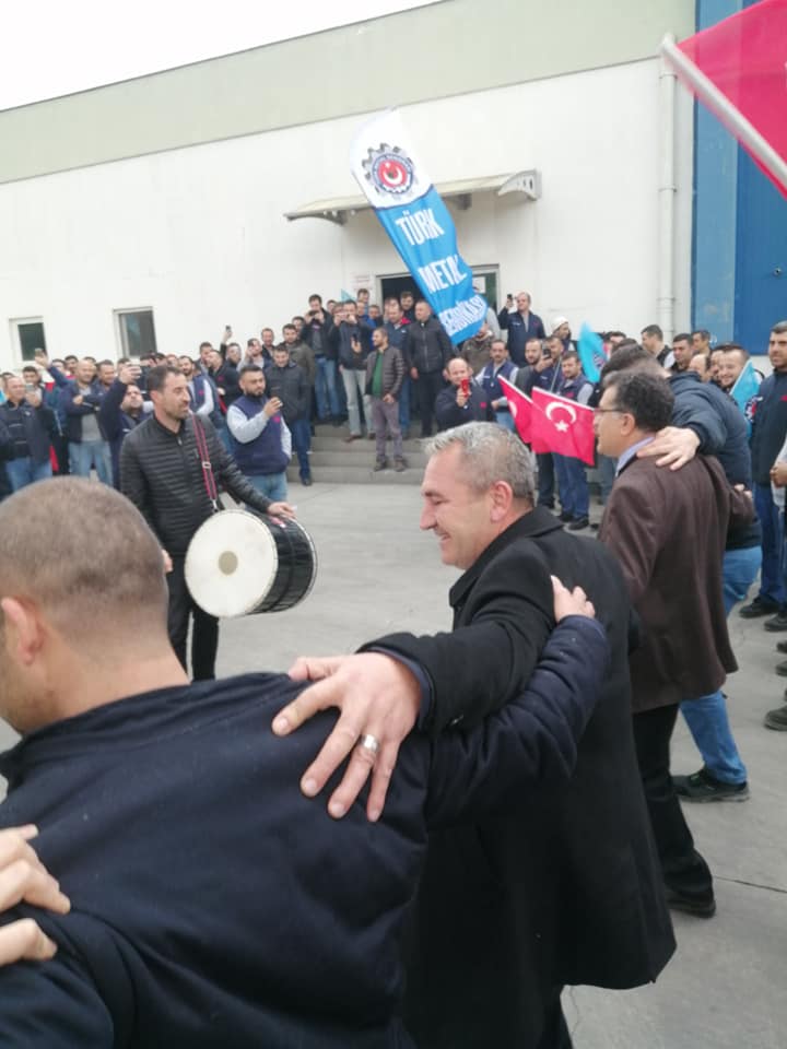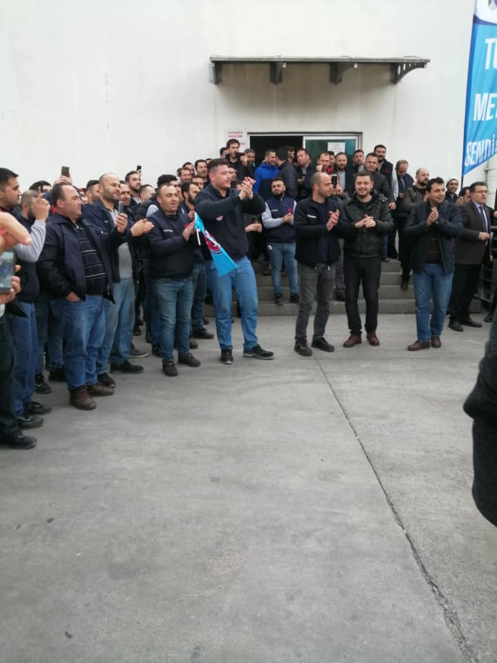 Şube Başkanımız Ercan Dereli; 29.01.2020 tarihinde imzalanan 2019-2021 MESS Grup Toplu İş Sözleşmesi sonrası Bosch Termoteknik San.ve Tic. A.Ş, Elba Basınçlı Döküm San. A.Ş, Oerlikon Kaynak Elektrodları ve San. A.Ş. ile Valfsel Armatür San. A.Ş. işyerlerimizde çalışan üyelerimiz ile coşkulu kutlamalarına ortak oldu.