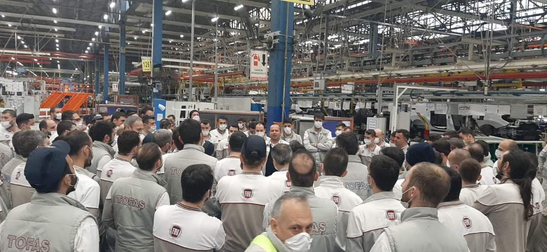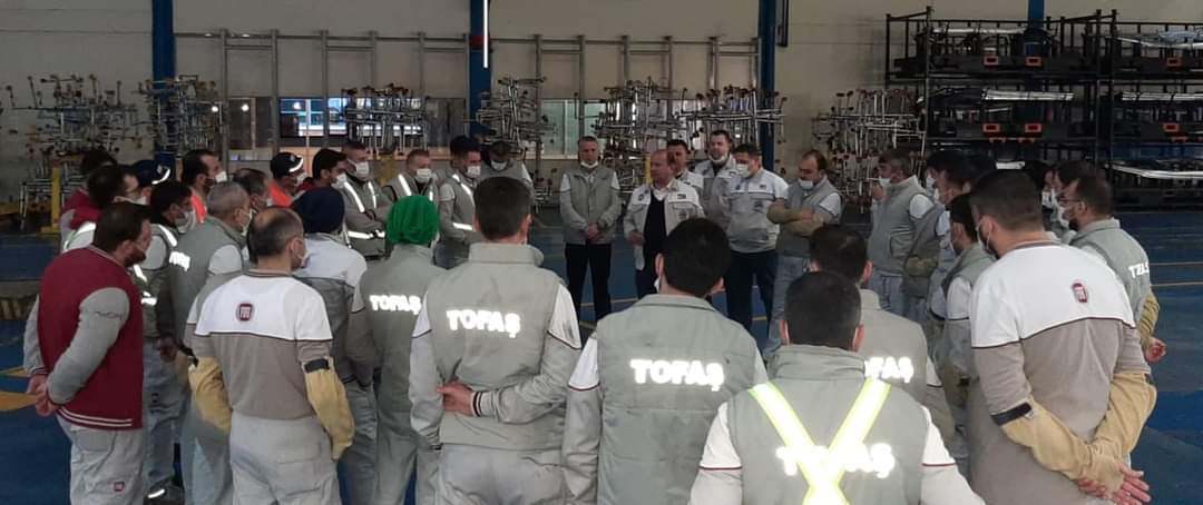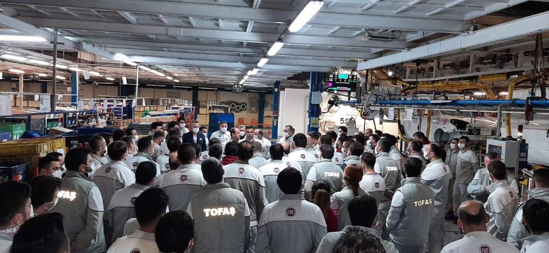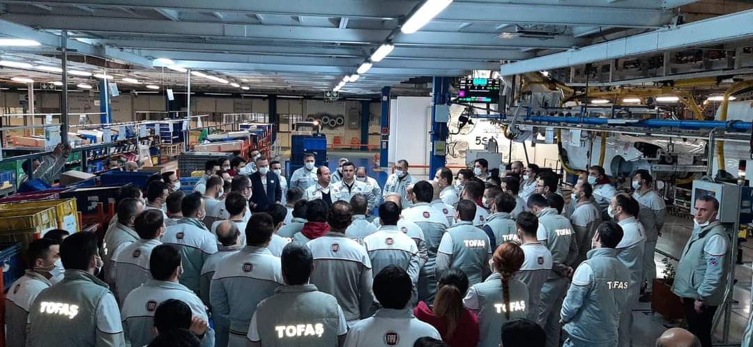 Şube Başkanımız Ömürlü Bayram, Tofaş Türk fabrikası 16:30 - 02:15 A Vardiyasında çalışan üyelerimizi ziyaret ederek 2021-2023 Toplu İş Sözleşmesi 2.dilimi zam oranı hakkında bilgilendirmelerde bulundu.